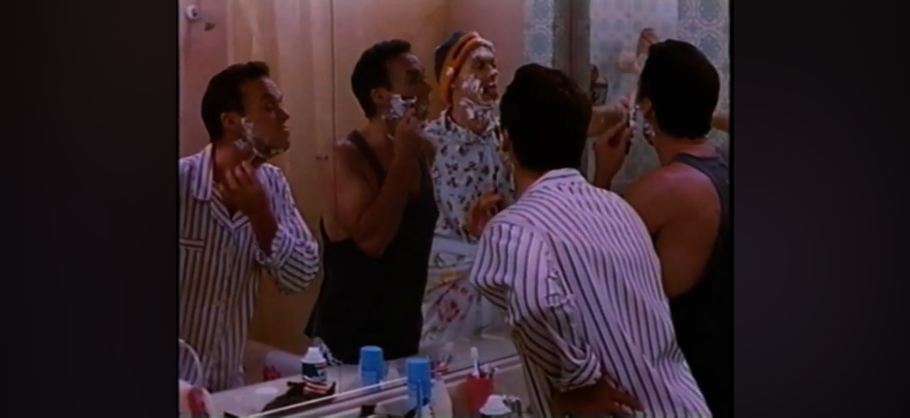 Michael Keaton, Michael Keaton, y Michael Keaton afeitándose en Multiplicity (Mis dobles, mi mujer y yo) de 1996.