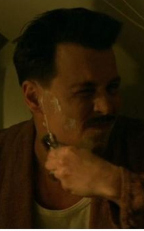 Imagino,que en la escena real,la maquinilla está sin cuchilla de afeitar…pero la cara que pone J. Deep es de cuando te estás irritando la cara ![]()