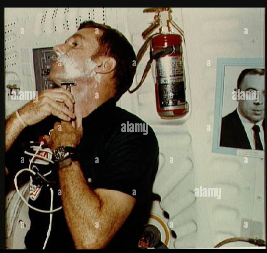 Aquí hay un video de Alan Bean afeitándose durante el Apollo 12.