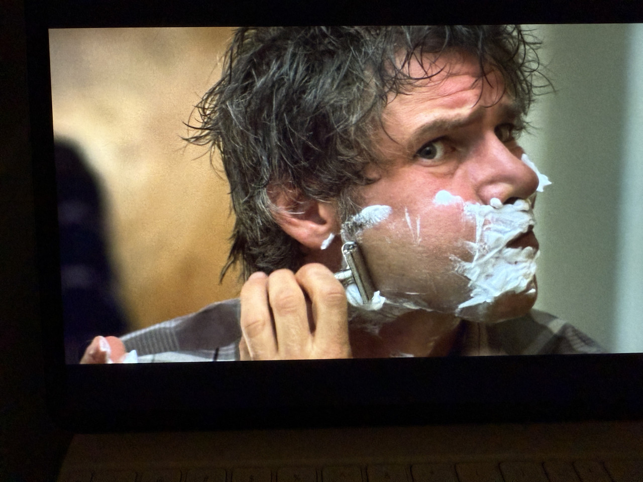 Pues el amigo Harrison Ford tiene otra escena de afeitado, en Frenetico…