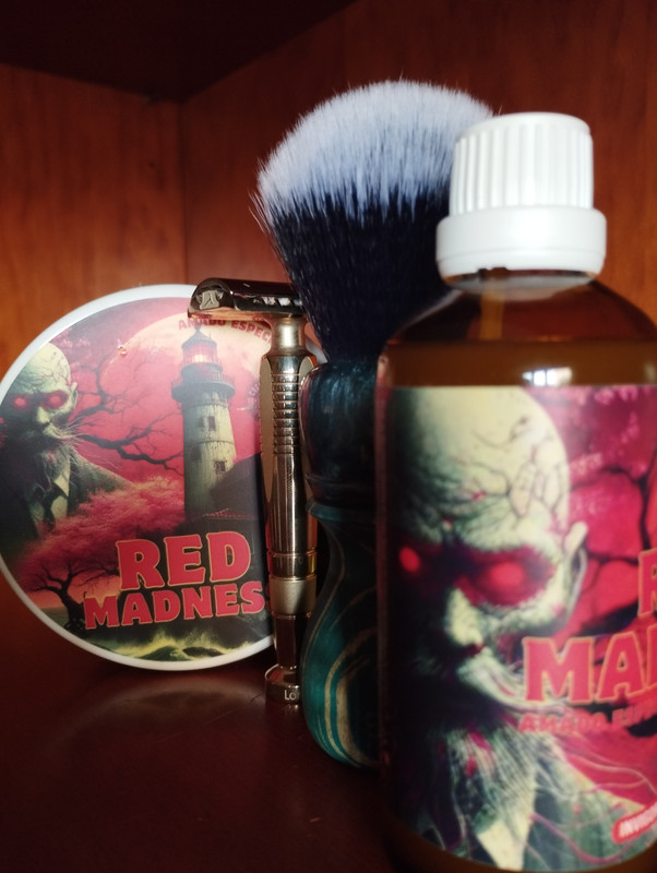 Hoy estreno de este combo de Westman, a mi nariz el aroma es a la cereza de los chupa-chups Kojak, esta base Nirvana produce una espuma muy densa y eso que he sido muy generoso con el agua, el resultado es una protección extraordinaria, la loción también me ha parecido muy buena ![]()
