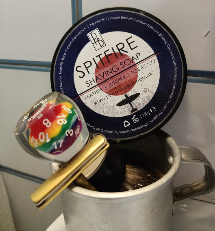PRE: caliente y Jabón Essências de Portugal : Yaqi Lucky Dice : Phoenix and Beau Spitfire : Shield Razor AC Brass : Feather AC #1 : In de jetooo