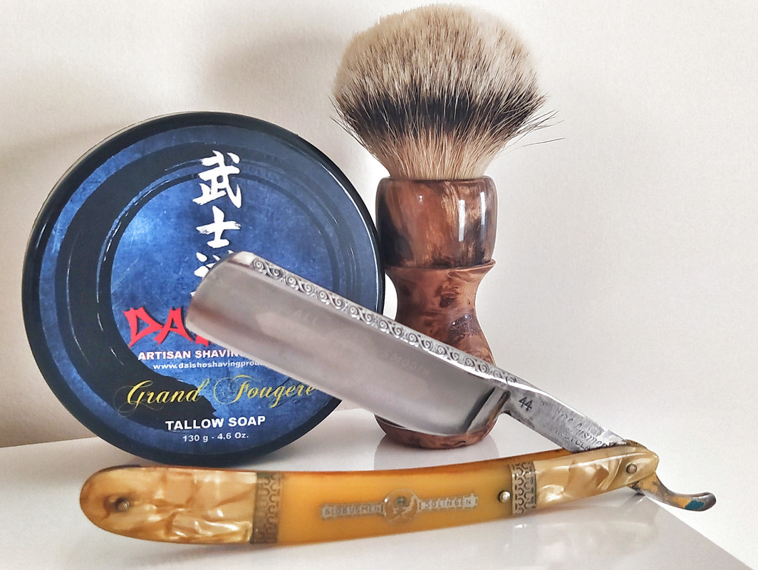 Brocha,llevaba bastante tiempo sin utlizarla,se me va la mano a la sinteticas…supongo que hare algo MAL o esto es asi ,porque es lo normal o habitual con este tipo de brochas…ya me ILUSTRAIS si os parece bien…cargo mas jabon porque la brocha digamos que traga…,o tal vez tenia que cargarla mas de jabon,tal vez mas tiempo en remojo…en fin…circunstancias varias tal vez…el afeitado a sido bueno…disfruto de este jabon y apechusques casi…como no esta en los escritos.