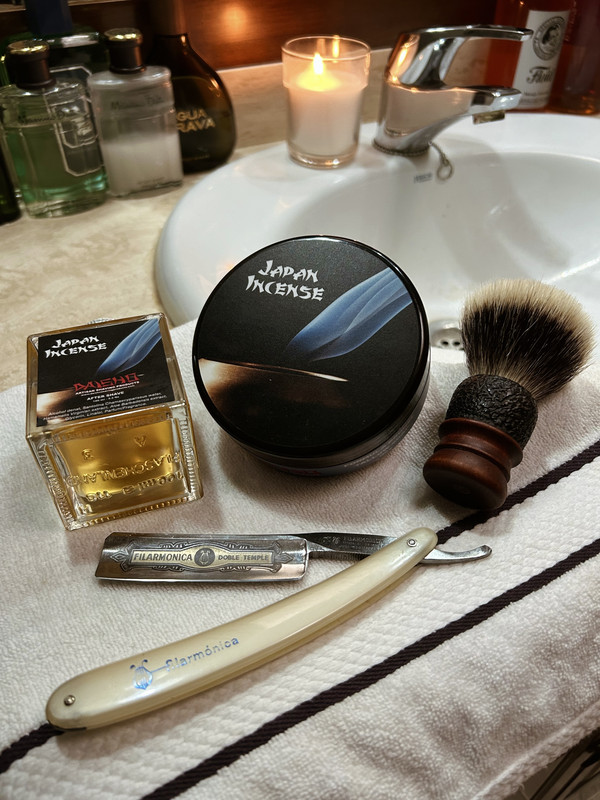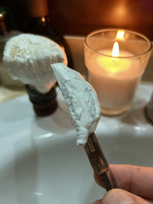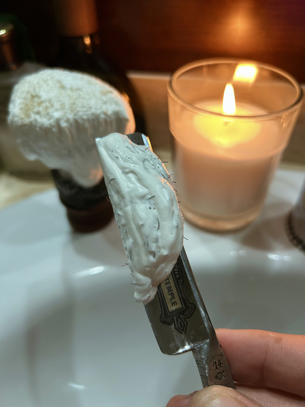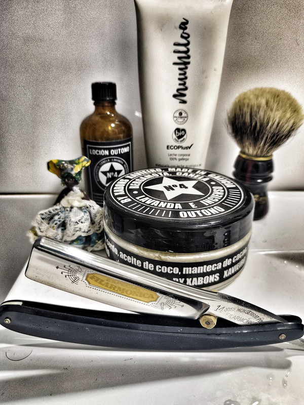 Si llega Efrén y te cede este navajón que con todo el cariño del mundo te ha preparado para el baile, lo lógico es que la barba entera se vaya, y eso he hecho, afeitarme por completo después de unos meses de arreglar y recortar. La navaja corta hasta la respiración de una forma en la que ni te enteras, aunque… de lo que sí me he enterado ha sido del masaje, vaya dos segundos de fuego me ha regalado en la zona del cuello. Le he dado cuero, pero supongo que no ha sido suficiente, tengo ganas de ver su comportamiento en sucesivos afeitados. A destacar también su sonido, da gusto escucharla afeitar.