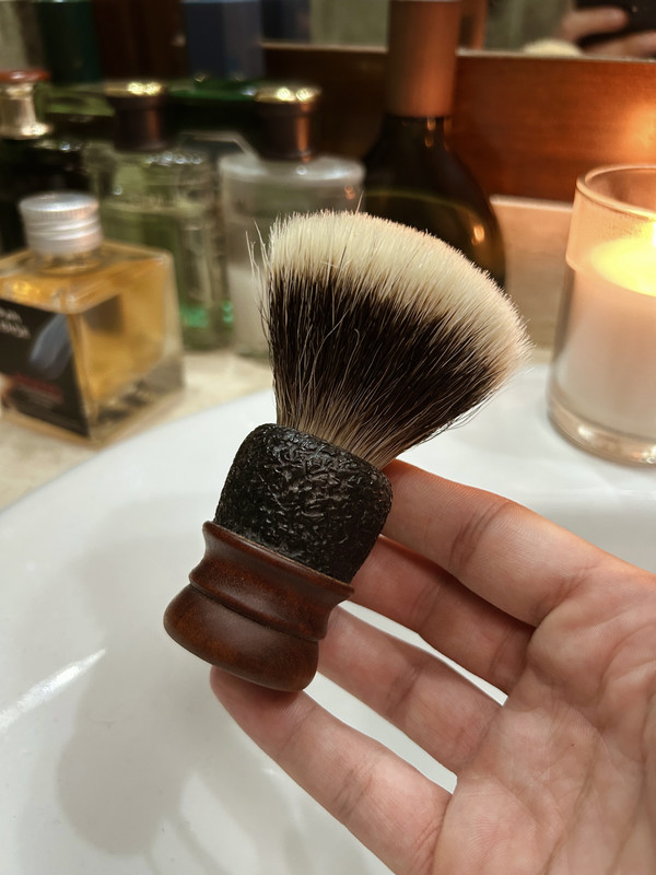 La brocha me la ha pasado Paco para que probase el nudo, y sinceramente, es el mejor tejón que he probado. Qué suavidad y qué pompón. Una maravilla.