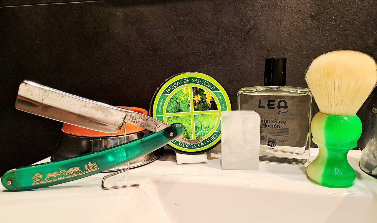 Conclusiones: He pasado unos días reguleros por culpa de la boca, que me habían quitado las ganas de afeitarme, así que tenía una barba ya de cinco días. Hoy, ya recuperado, vuelvo a la rutina con estas herramientas fabulosas de las que estreno el jabón que huele de maravilla y ese tazón para espumar que mi hija me ha hecho en un taller de cerámica.