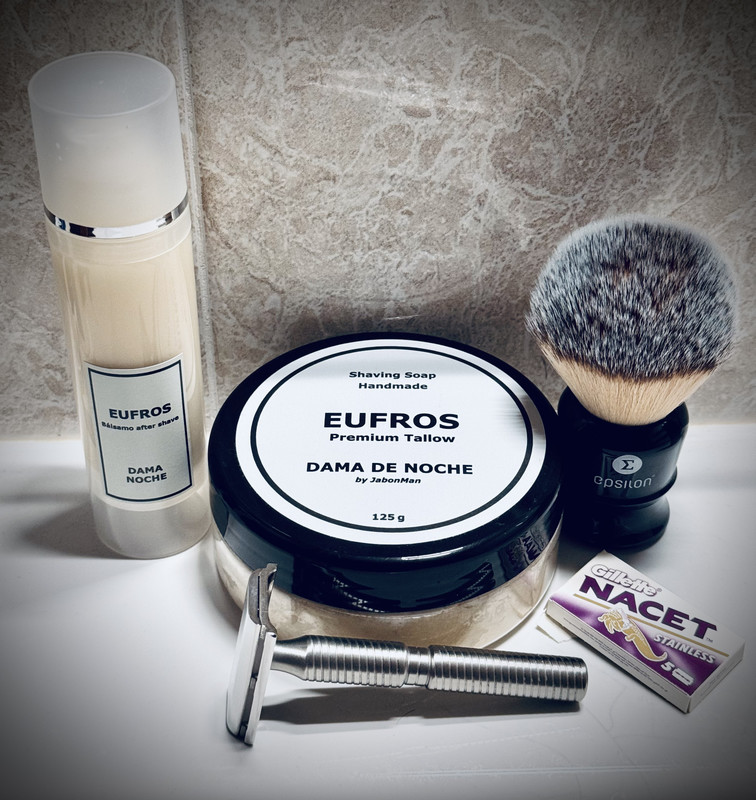 Un afeitado de lujo, el kamisori con ese damasco precioso y menudo bisel brillante tiene que ir de lujo, saludos.