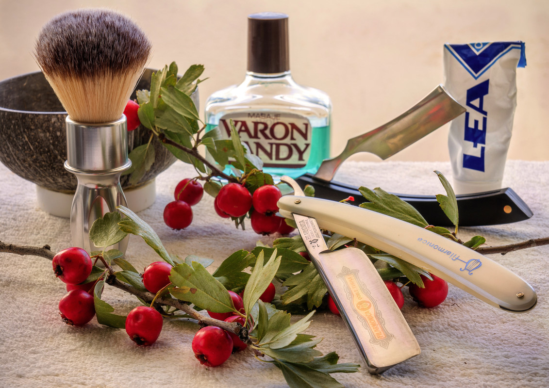 Floïd pre shave oil. Sabonaria e perfumaria Confiança, S.A., O Melhor: Shaving cream, balm aftershave & EdT. Barcelona Shaving Brush (BSB), Manchurian badger SV, special chromed aluminium. Super Kikuboshi, 6/8.