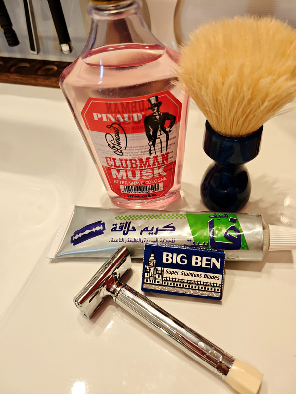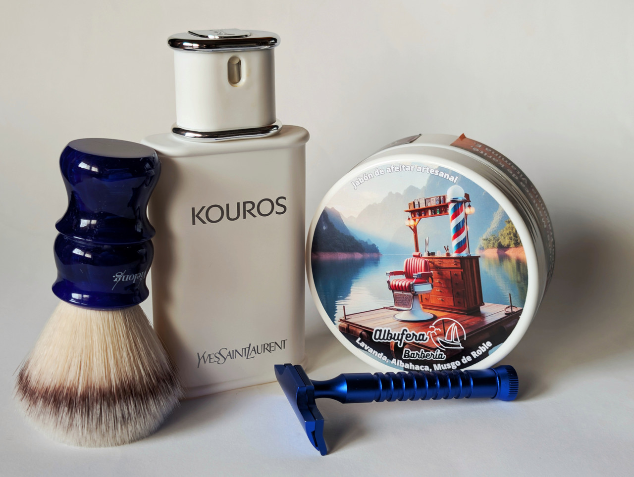Maquinilla: Razorock Hawk V2 Cuchilla: Kai Captain Titan Mild Brocha: Vielong Tulip Jabón: Barberia de Albufera Shaving Post-afeitado: Espuma de confort, Loción Barbería Perfume: Kouros de YSL