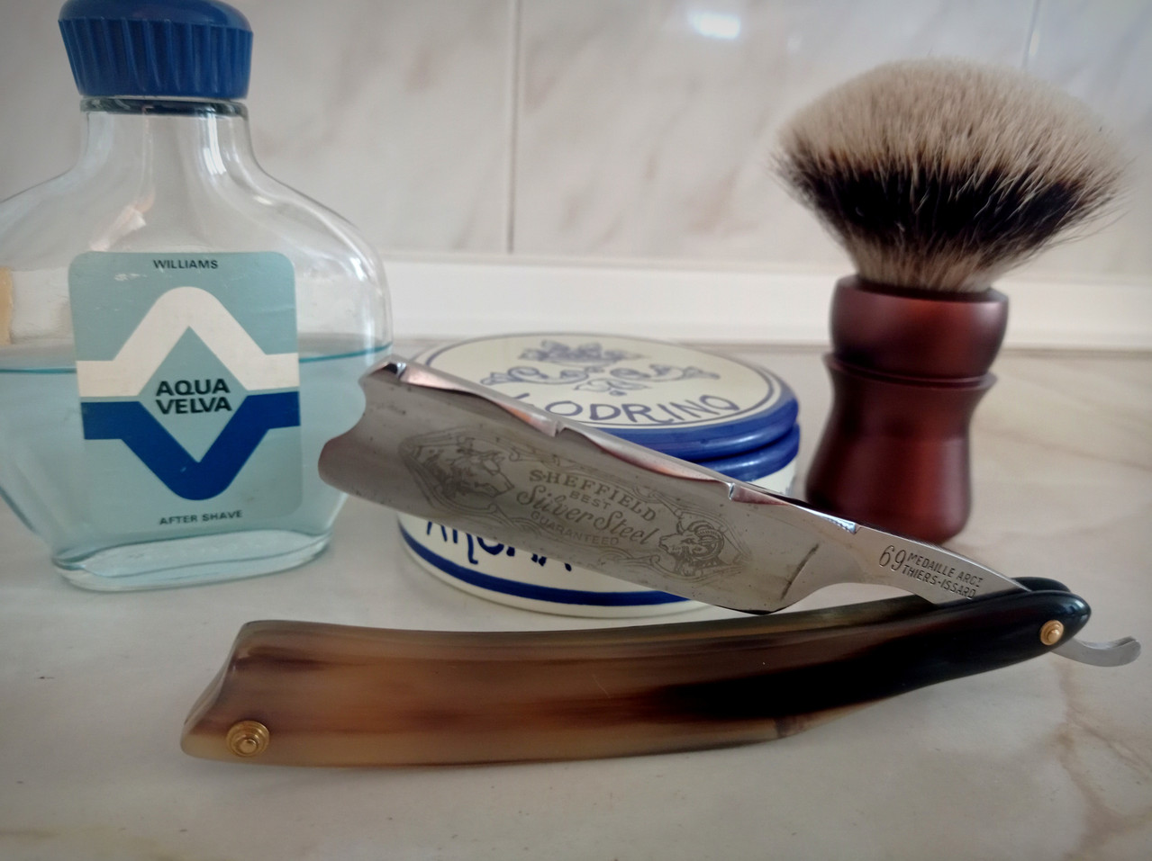 Algo que me encanta de las vintage es lo ligeras que son. Esta pesa unos 58 gramos, así que el contrapelo en mejillas y cuello sale sin esfuerzo.