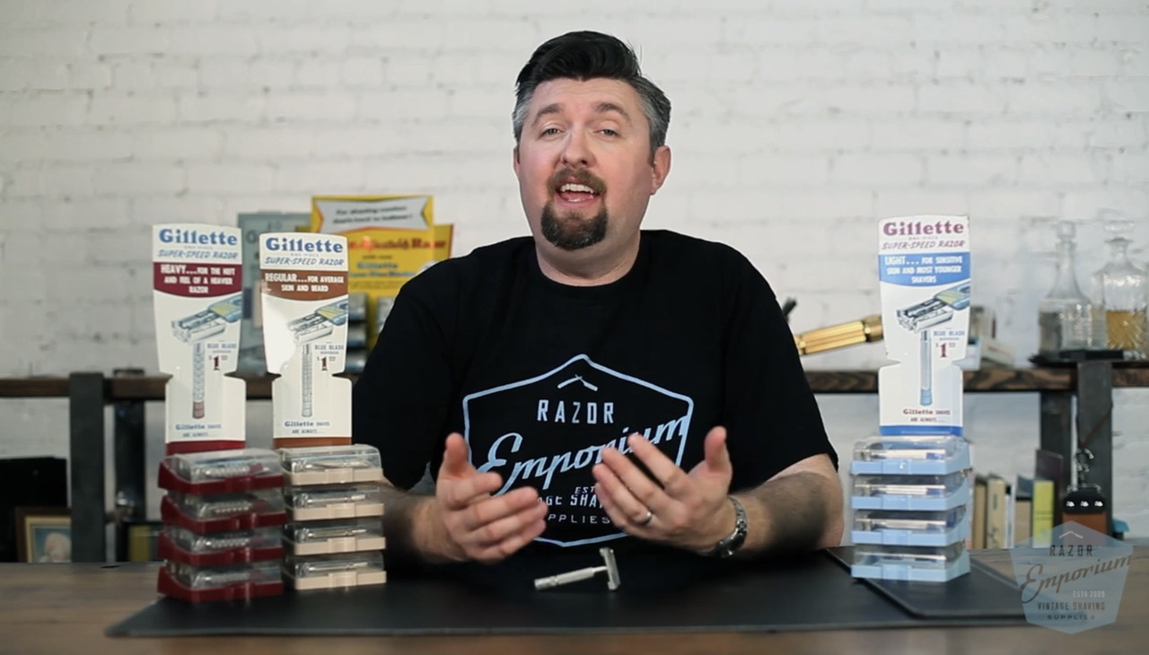 Las Super Speed se comercializaron como un trio de maquinillas. Punta azul para pieles sensibles y hombres comenzando a afeitarse, Flare tip para adultos de barba normal o “Regular” en inglés, y la punta roja para “Barbas duras” o “Heavy”.