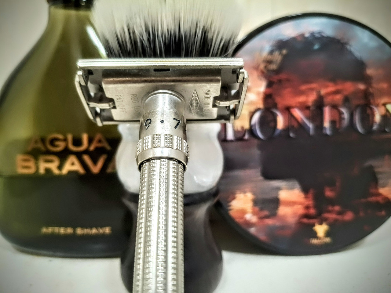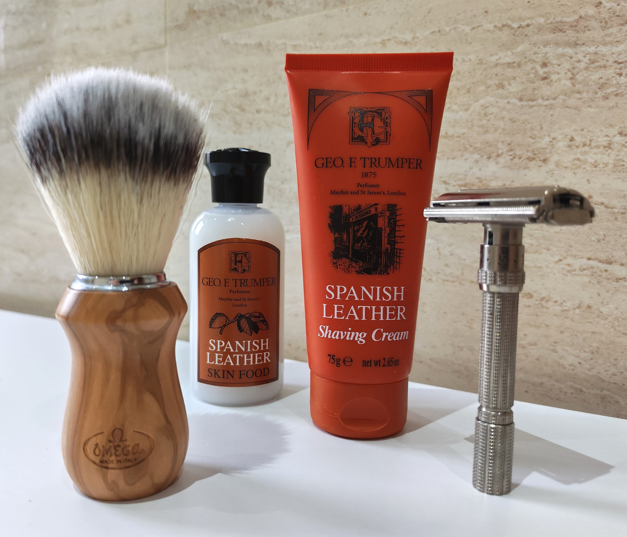 Agua caliente abundante/ Omega sintetica/ Gillette Slim 6#/ Iridium super/ GFT Spanish leather crema y Bálsamo.