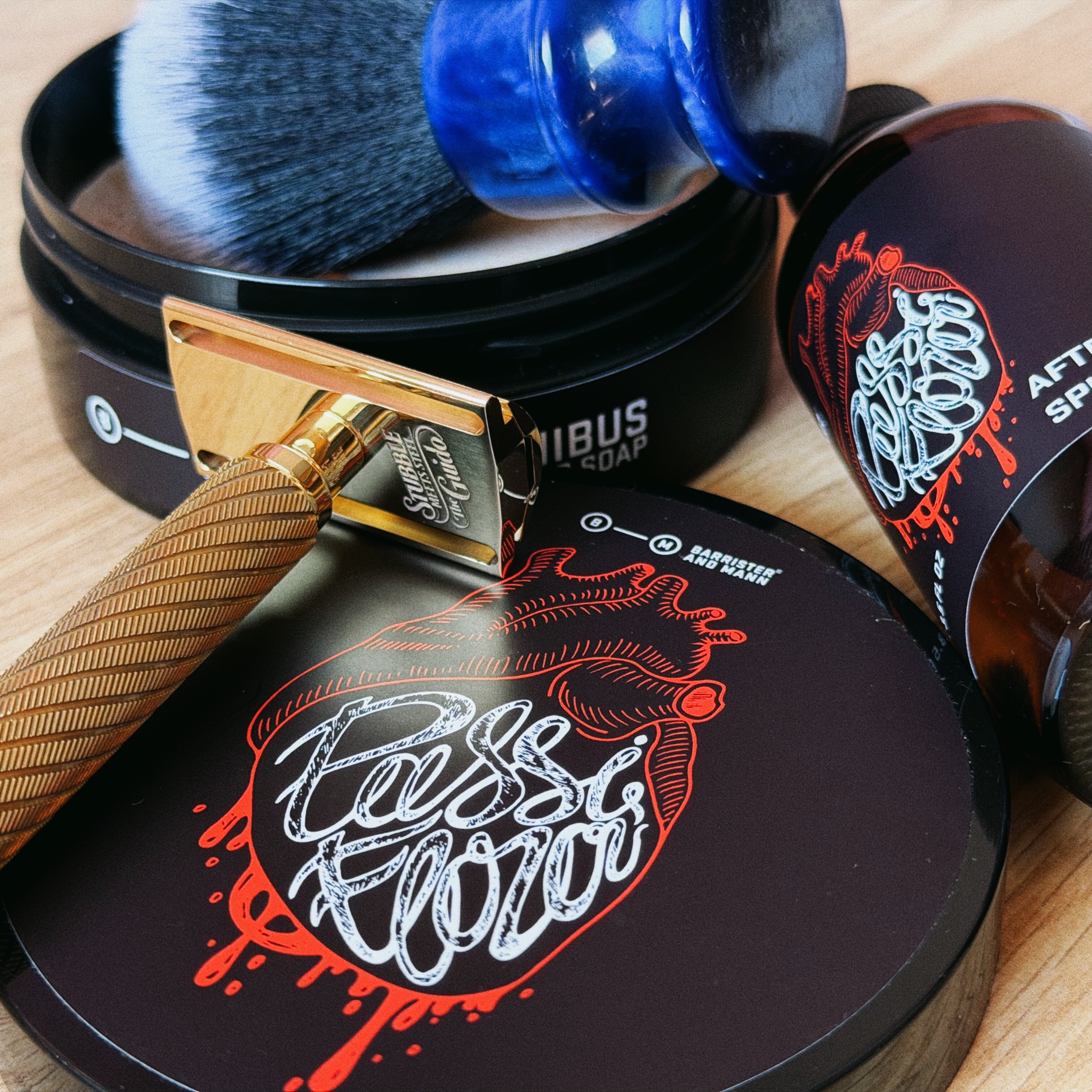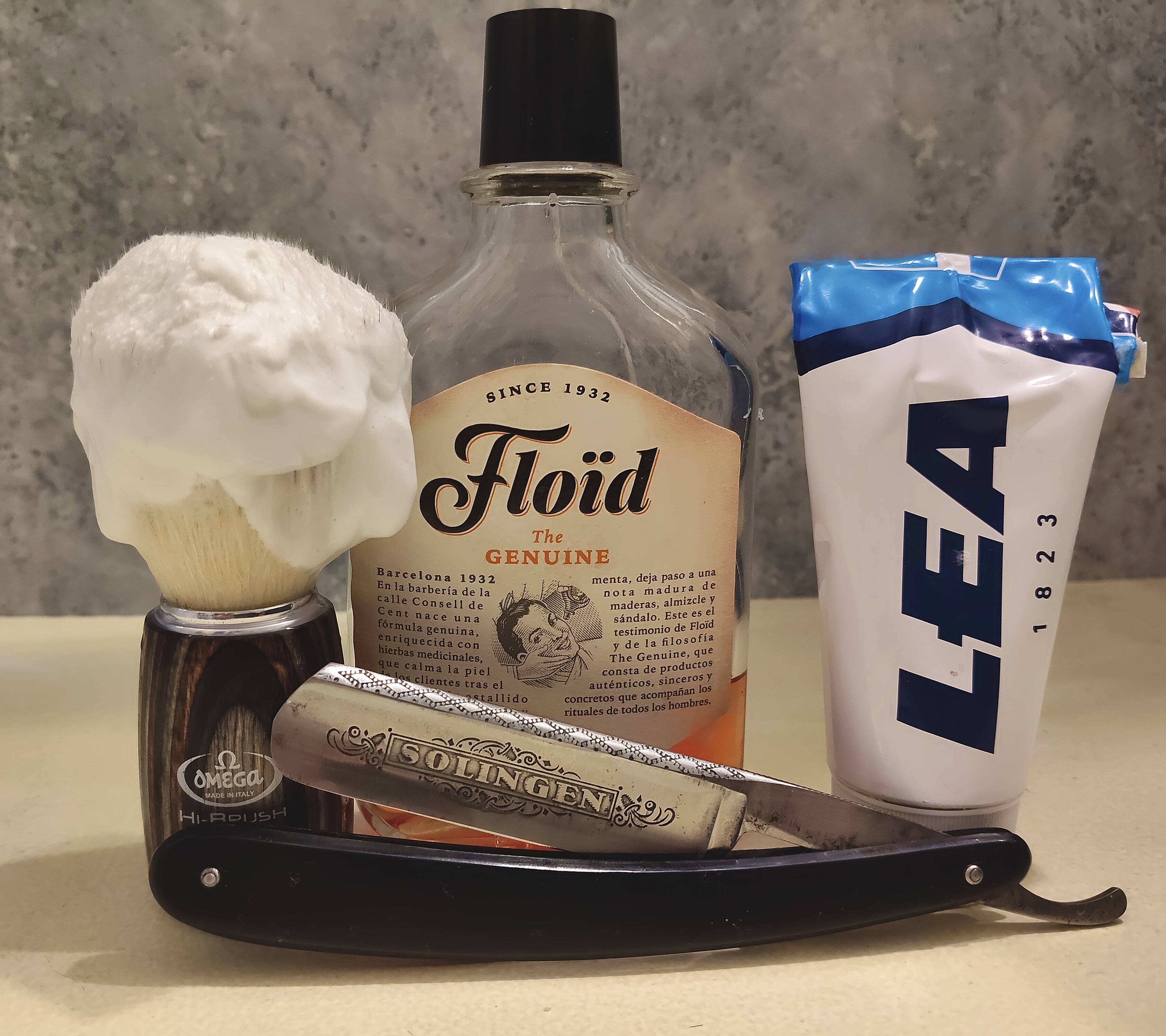 Una navaja excelente, pasada por un cuero supremo. Un jabón modesto y una brocha que acaricia de piel como manos femeninas.. Se han unido hoy a favor de obra,como se alinean los planetas en un acontecimiento extraordinario. Así cualquier cosa por simple que sea se vuelve Épica