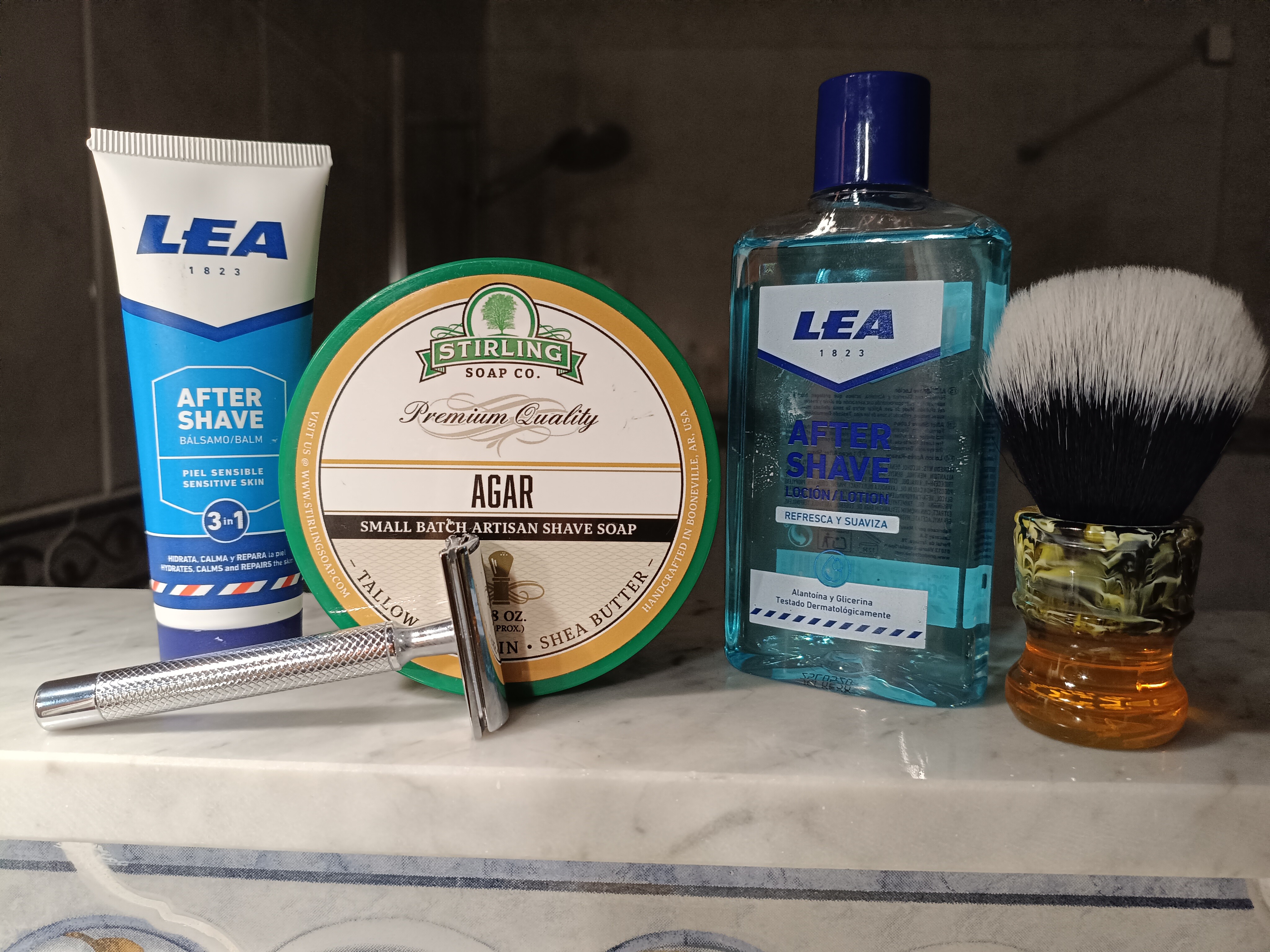 Buen afeitado con Filarmónica 14 Doble temple/Proraso/omega sintetica y rematado con Myrsol blue con resultado culito bebe.