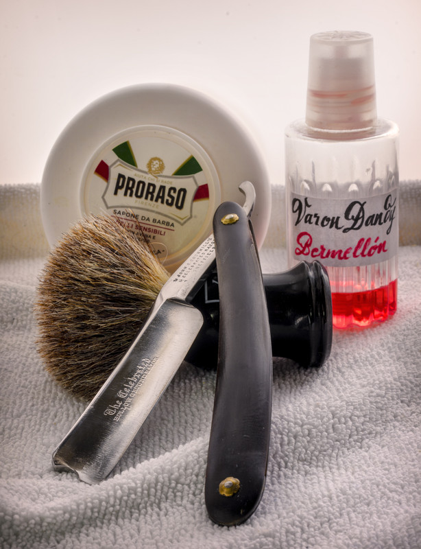 Brocha Vielong silverstip 21/50, jabón Colonia de Joserra, maquinilla Rockwell placa 4, cuchilla Astra verde, afeitado a 2 pases F-L , after Varón Dandy.