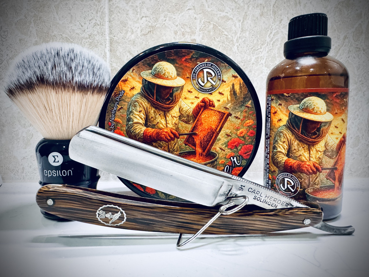 PRE: duchazo bueno : Epsilon sintética 26/54mm : Beekeeper Noir by Joserra : : Carl Herder Quo Vadis de Confort : Si … manteca de Tito. : Enjuague con agua fría : loción a juego