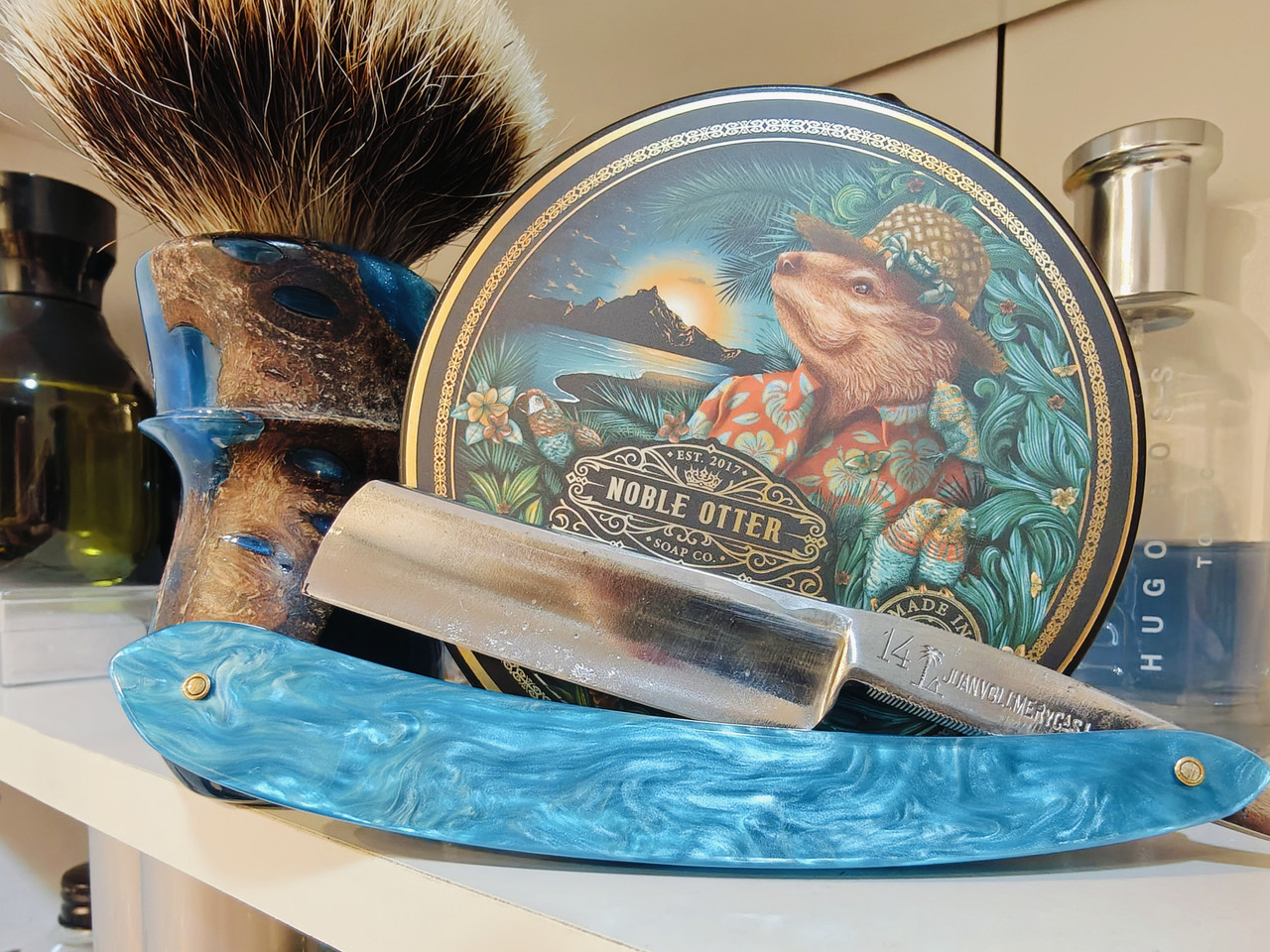 Arrancamos semana estrenando este Noble Otter Monoï de Tahití que me ha parecido un muy buen jabón,espuma cremosa ,protectora y un buen post y un olor que está presente en todo el afeitado pero sin llegar a ser invasivo,