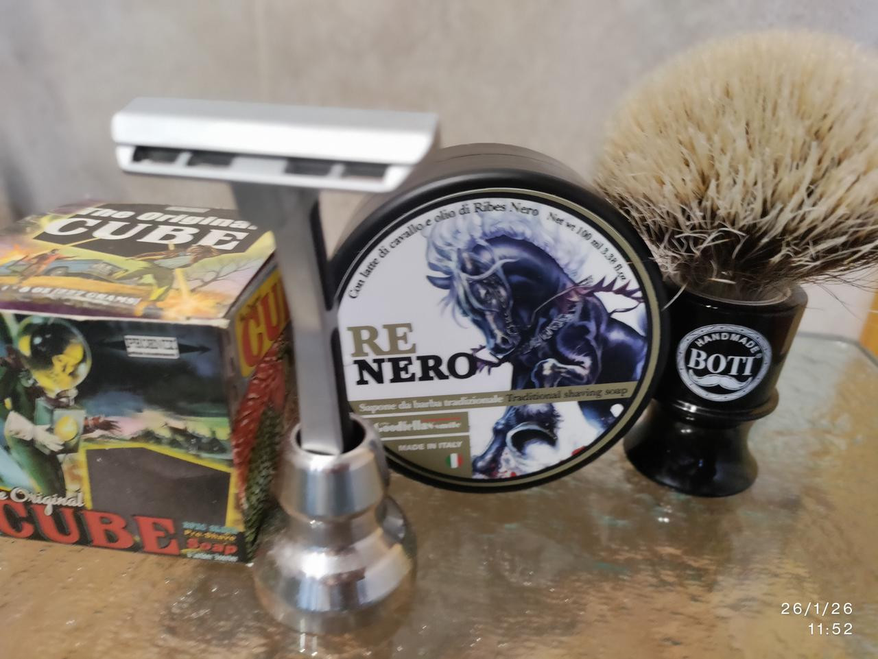 Afeitado apurado a 2 pases. Hoy he usado el cubo 2.0 de Phoenix Artisan como pre. Cada vez me gusta más el desempeño de la Colorlamb. Creo que deja en ridículo a otras maquinitas que multiplican su precio.