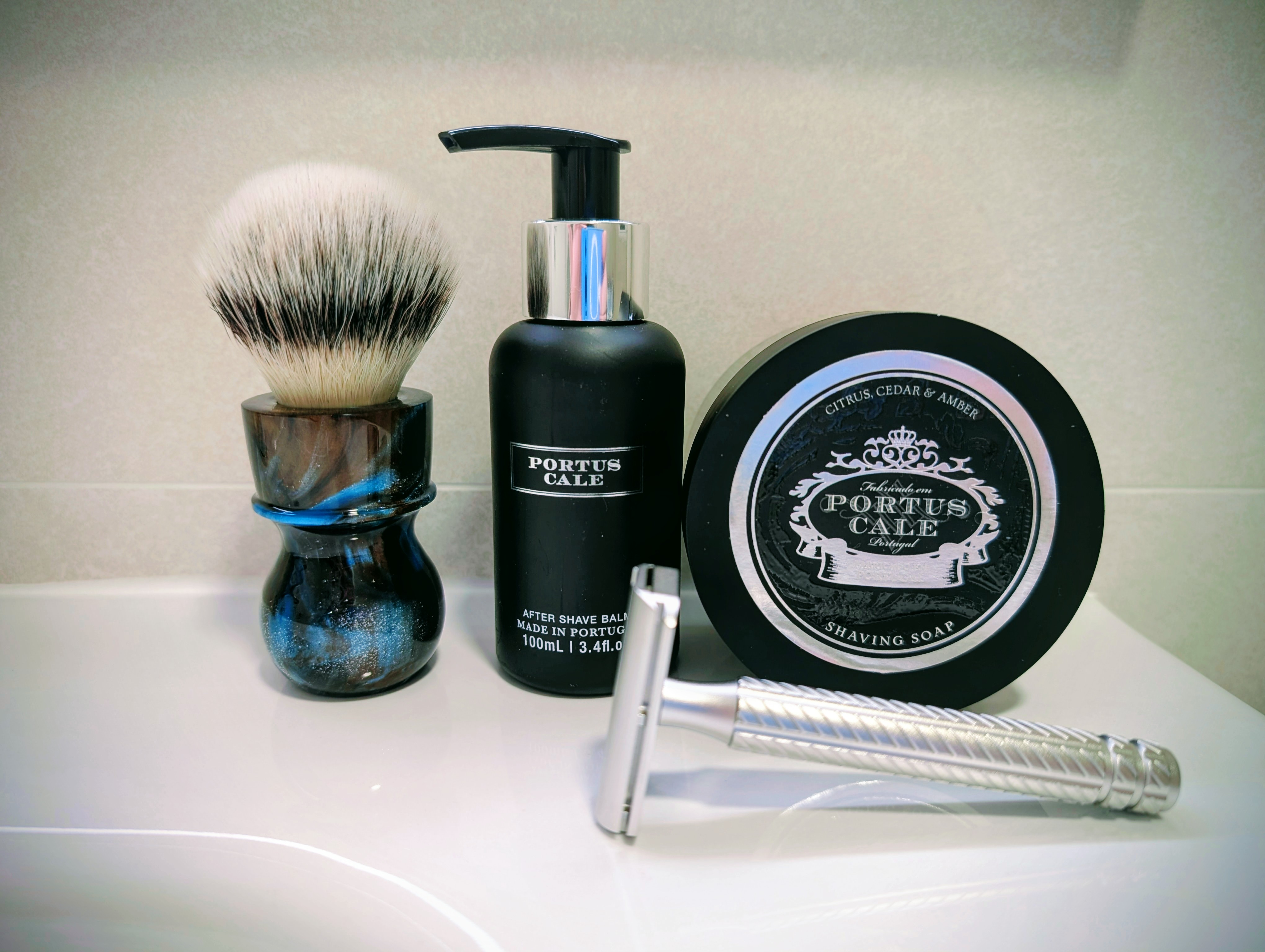 Pre: Emulsión Álvarez Gómez Brocha: Uomo Destiny - ‘Silencel’ G5 Jabón: Portus Cale Black Edition Cuchilla: King C Gillette #4 Maquinilla: Aylsworth Apex Plus After: Portus Cale Black Edition
