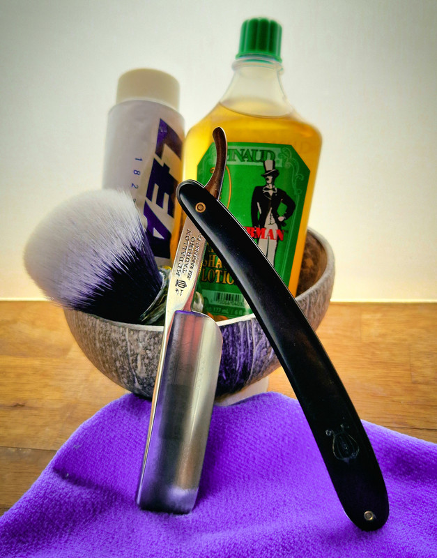 Con la navaja, y su respectivo asentador de bastidor, logré algunos buenos afeitados, pero me llevé unos cuantos tajos a imitación de Luis XVI (q.s.g.h.). Finalmente, la falta de tiempo por las mañanas me inclinó a buscar alternativas. Y unos años después, coincidiendo con mi decisión de dejarme barba y afeitarme la cabeza, me lancé con la maquinilla, ya sin tutoriales ni nada. Por eso nunca me ha parecido ni la décima parte de peligrosa que la barbera, que conservo por ahí guardada y que me temo que no volveré a usar.