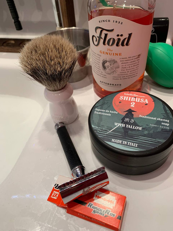 Brocha: Zenith Boar SCNHG 2024 LE Maquinilla: Alpha Guido Brass Cuchilla: Wizamet iridium super #3 Jabón: Eufros Mediterraneo Loción: AS lea after azul