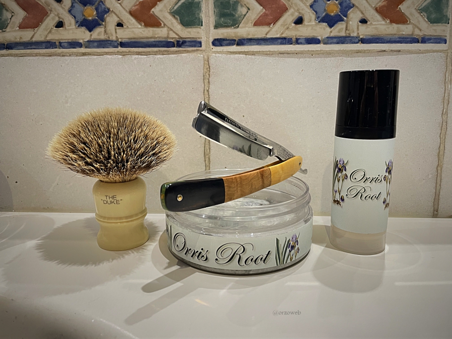 Flöid oil pre shave. Meißner Tremonia, Wild oranges: Shaving cream, lotion & balm aftershave. Shavemac D01 silvertip two bands badger, Butterscotch. German Hoppe, 14 (“Maison Battemberg - Toledo, 48 Madrid”), Solingen. Terre de Hermes, EdT.