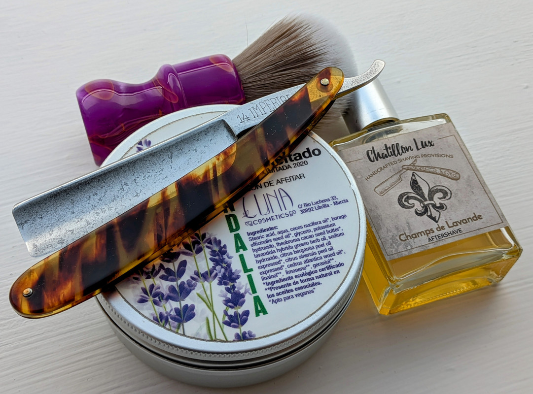 Llevaba más barba de lo que suelo aguantar ahora en verano, 5 días, así que saqué la Star para dar una buena poda en solo dos pasadas.