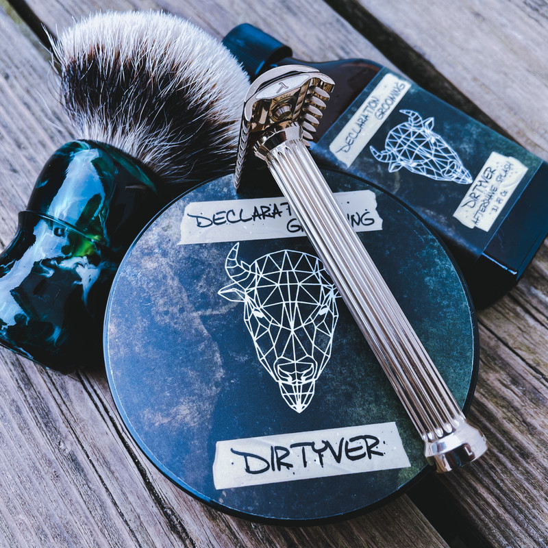 Menos agresiva que la Rex (y más ligera, por definición) y con un cabezal más delgado que el de la Merkur y sin tanta sensación de cuchilla. La Gibbs 15 de Heritage es muy manejable en las zonas más difíciles (debajo de la nariz) y es muy permisiva. El fabricante hizo una tirada limitada con casi todo vendido de ante mano, pero ha comentado que en un futuro miraría de sacar una en latón… ahora mismo es difícil de conseguir.