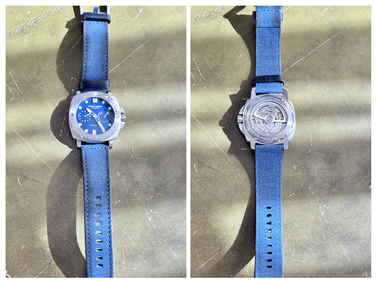 Estos días, con buen tiempo, en brazo un reloj estilo buceo/militar, Made in China: Un Pagani Desing PD-1767 azul que se lanzó al mercado en el año 2023.