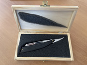 Guapísimo navajon Alessandro, sabiendo el buen gusto que tienes debe de corta divino y dar unos placenteros afeitados. Menudo gavilán cómodo y buena punta. Te la quitarán de la mano rápidamente. Un abrazo fuerte ![]()