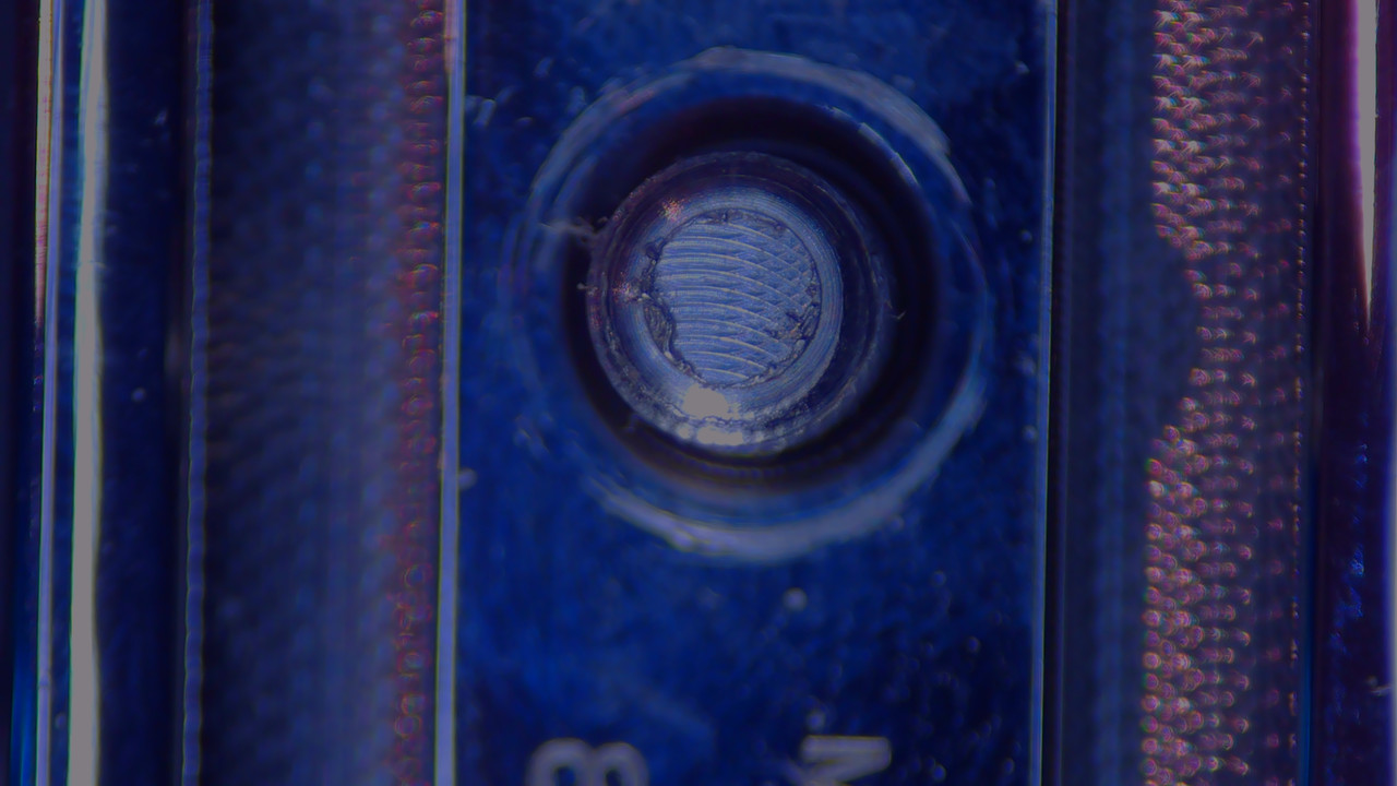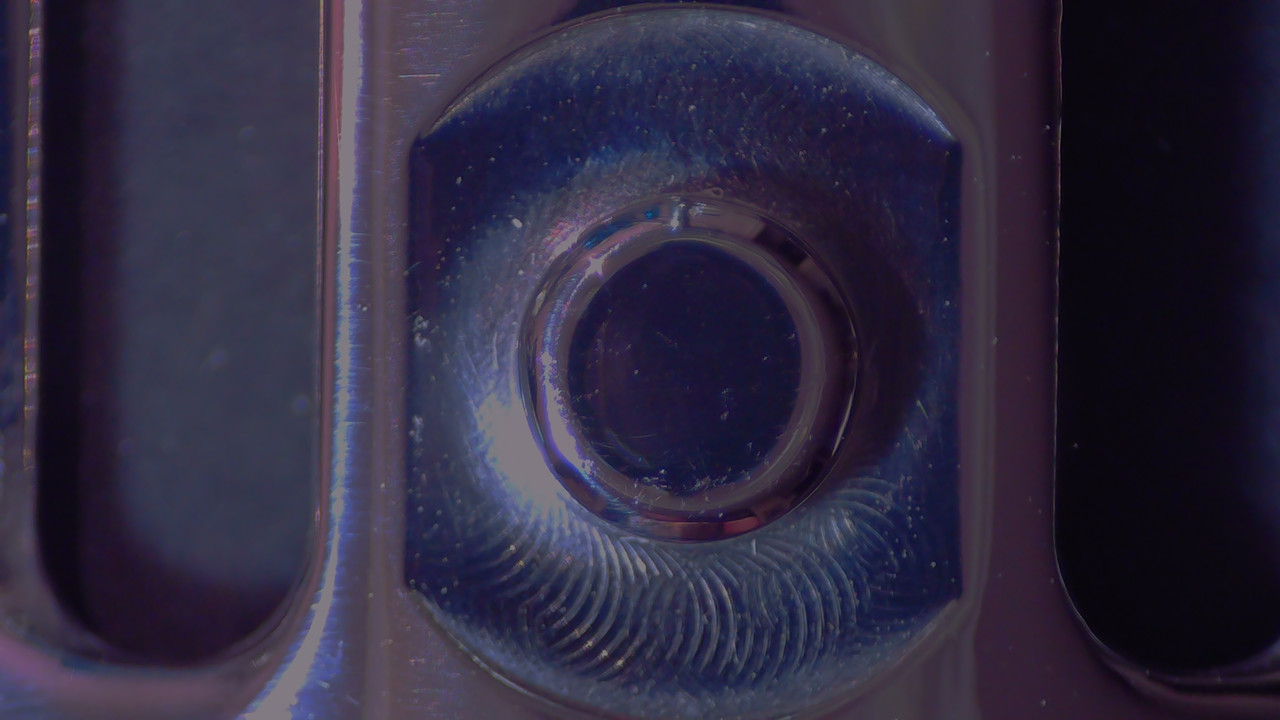 Imagen interna de la tapa. Hueco para el botón de la cuchilla. Se aprecia marca de la herramienta de mecanizado y acabado micromartelé en la superficie interna.