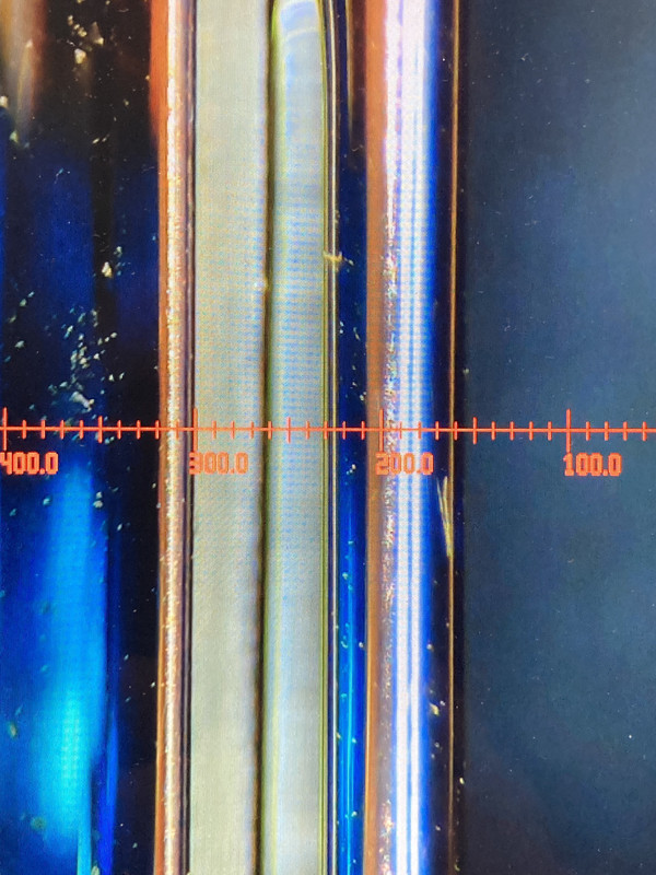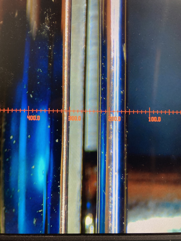 Las siguientes fotos son medida del gap. No he calibrado la retícula para la ampliación, así que aunque en las fotos se vea que el gap son 7 decimas, no se puede considerar que realmente lo sean. Es mas