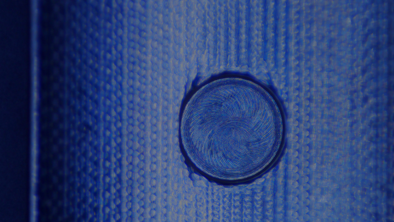 Placa base. Detalle del botón donde se aloja la cuchilla. Se ve en el hueco las marcas de la herramienta de mecanizado.