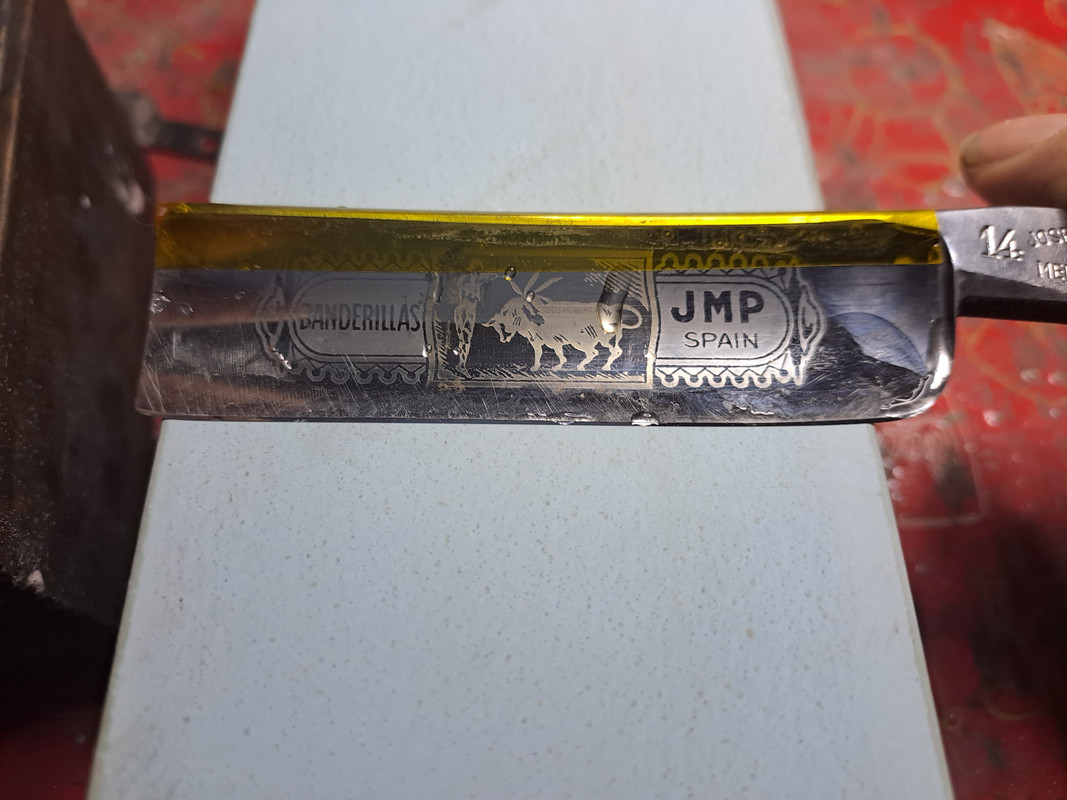 Le han quedado algunas cicatrices como esperaba, el sello quedó intacto, hoja alineada, afilada, desinfectada, y lista para el ruedo!