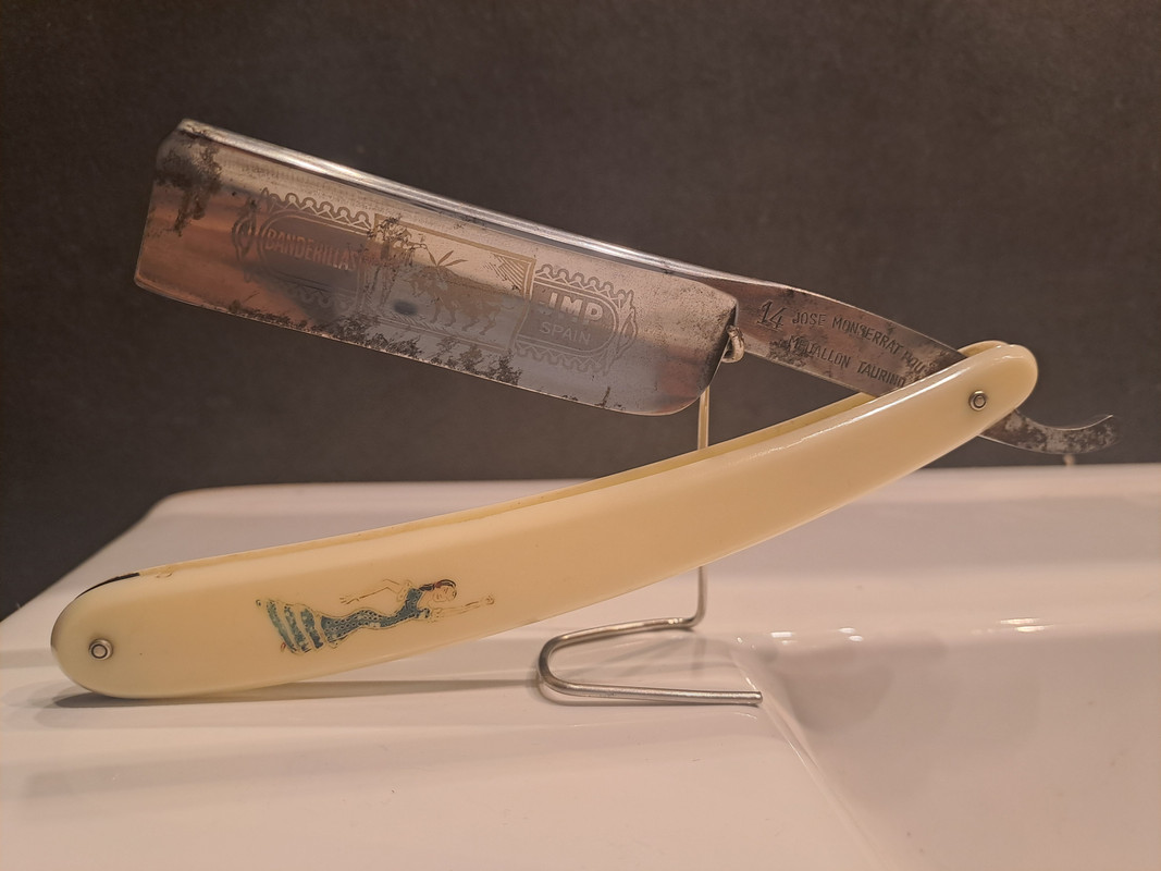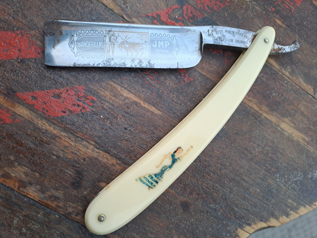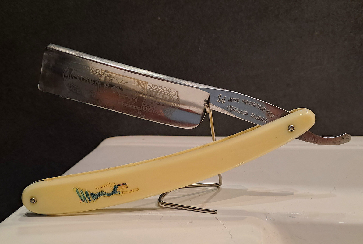 Tenía mmmuchas ganas de tener esta navaja, Medallón Taurino cachas blancas con la Bailaora, esta es de la 1° generación JMP, se puso a tiro…y en fin, vamos a ponerla a punto.