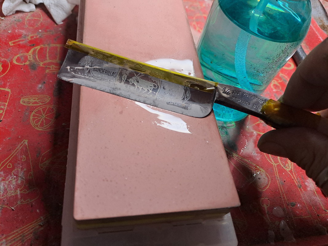 Voy a hacerle bisel nuevo y afilado en progresión con mis dos piedras.