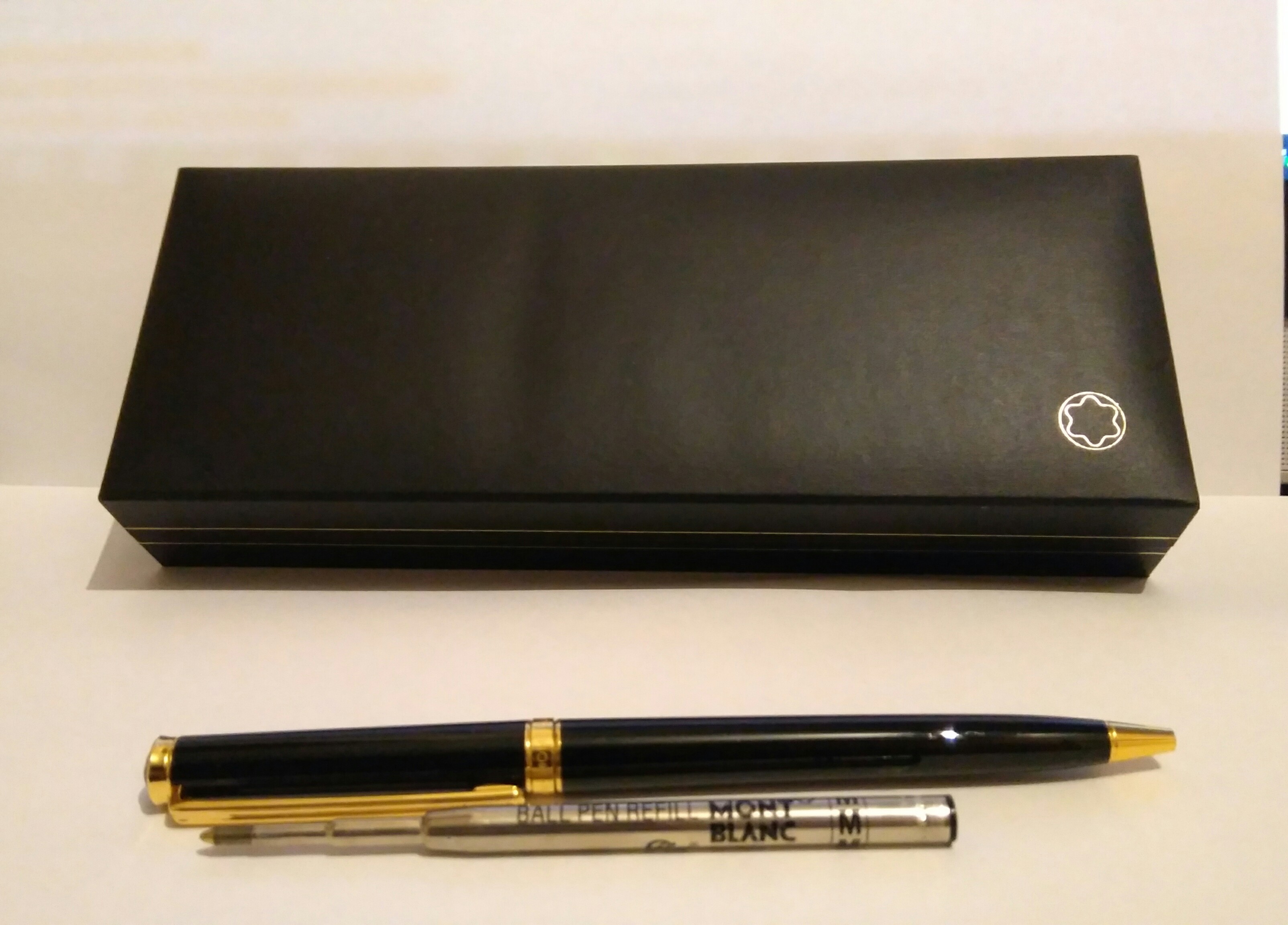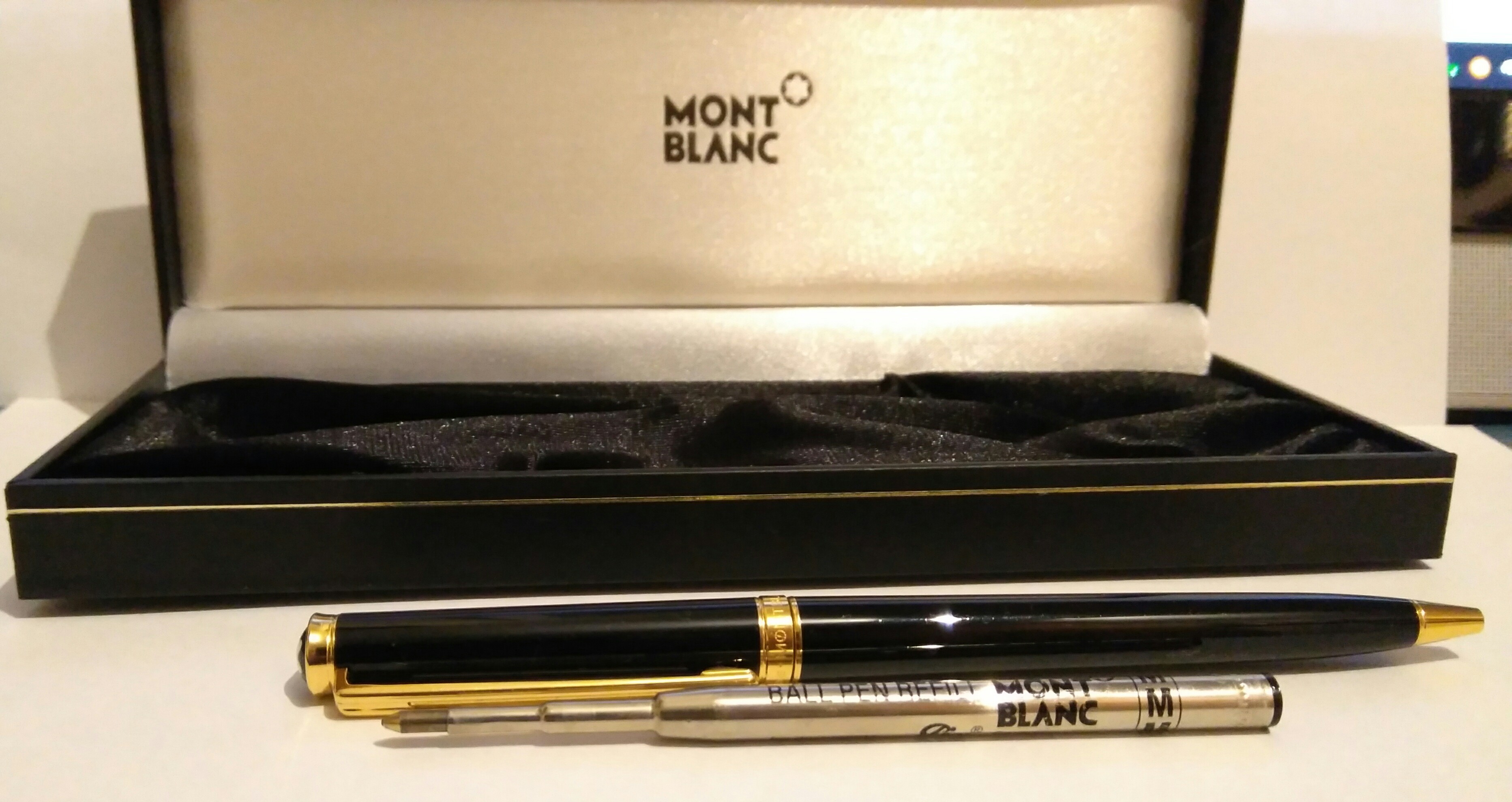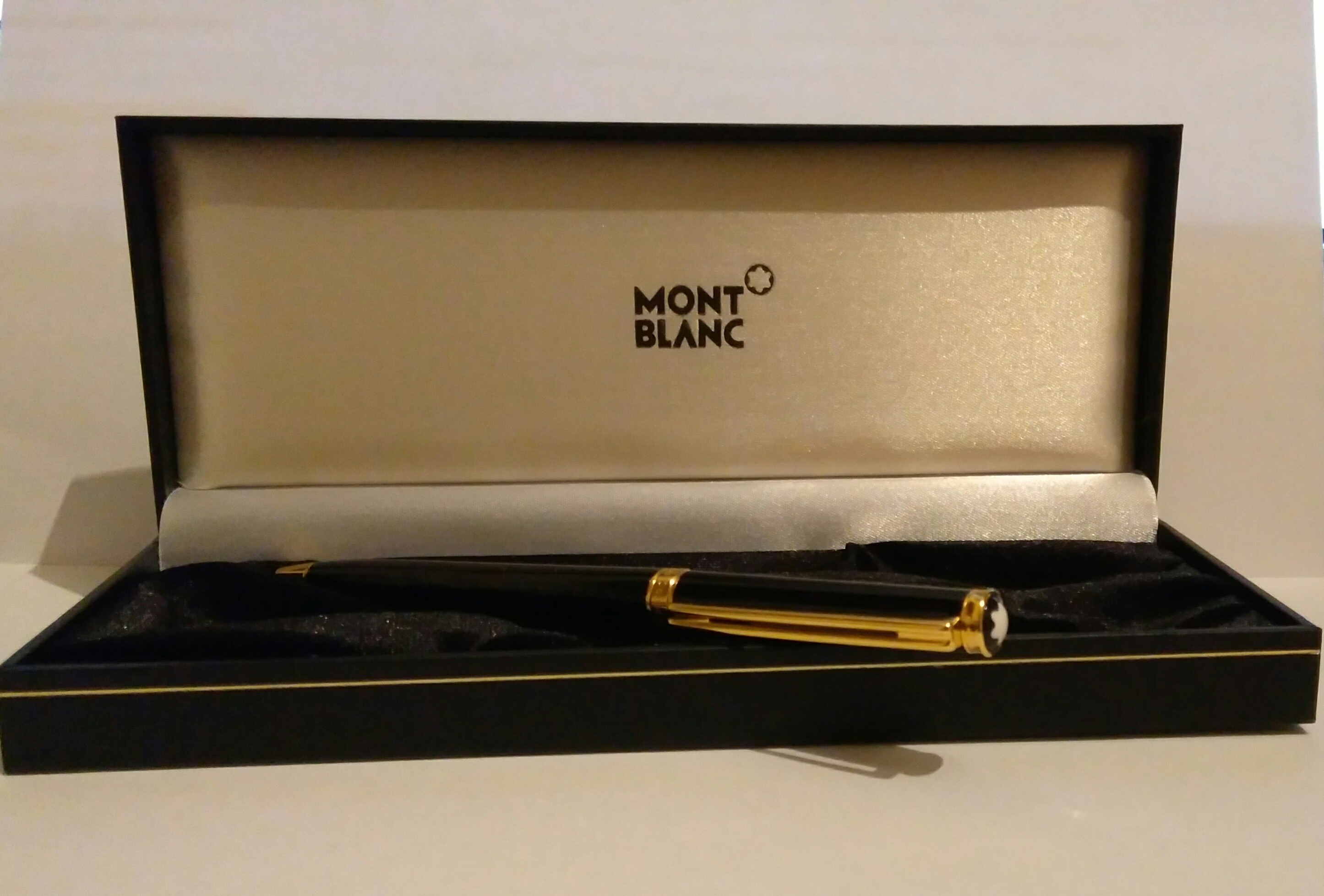 Muy buenas a todos. Pongo a la venta éste bolígrafo Montblanc Noblesse Obligue, de resina color negro, anillos dorados y clip revestido de oro. Incluye cartucho color negro. Apenas usado.