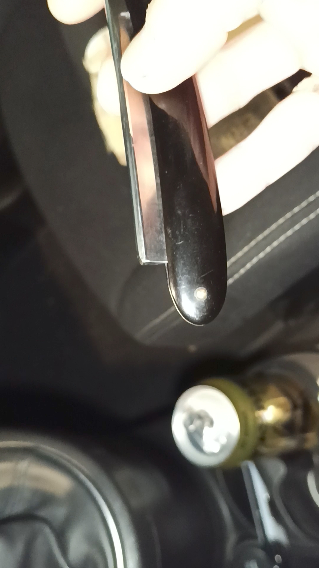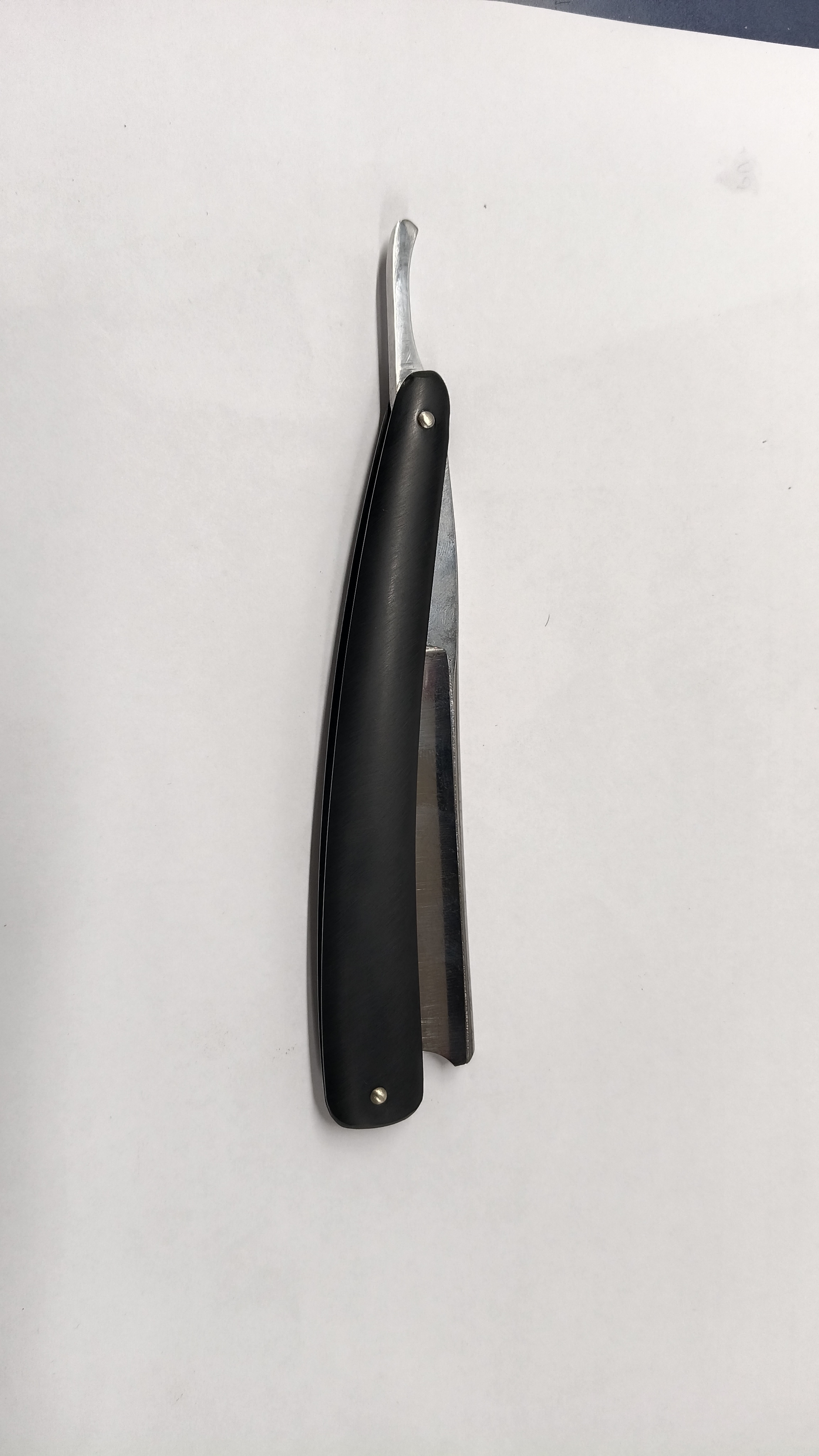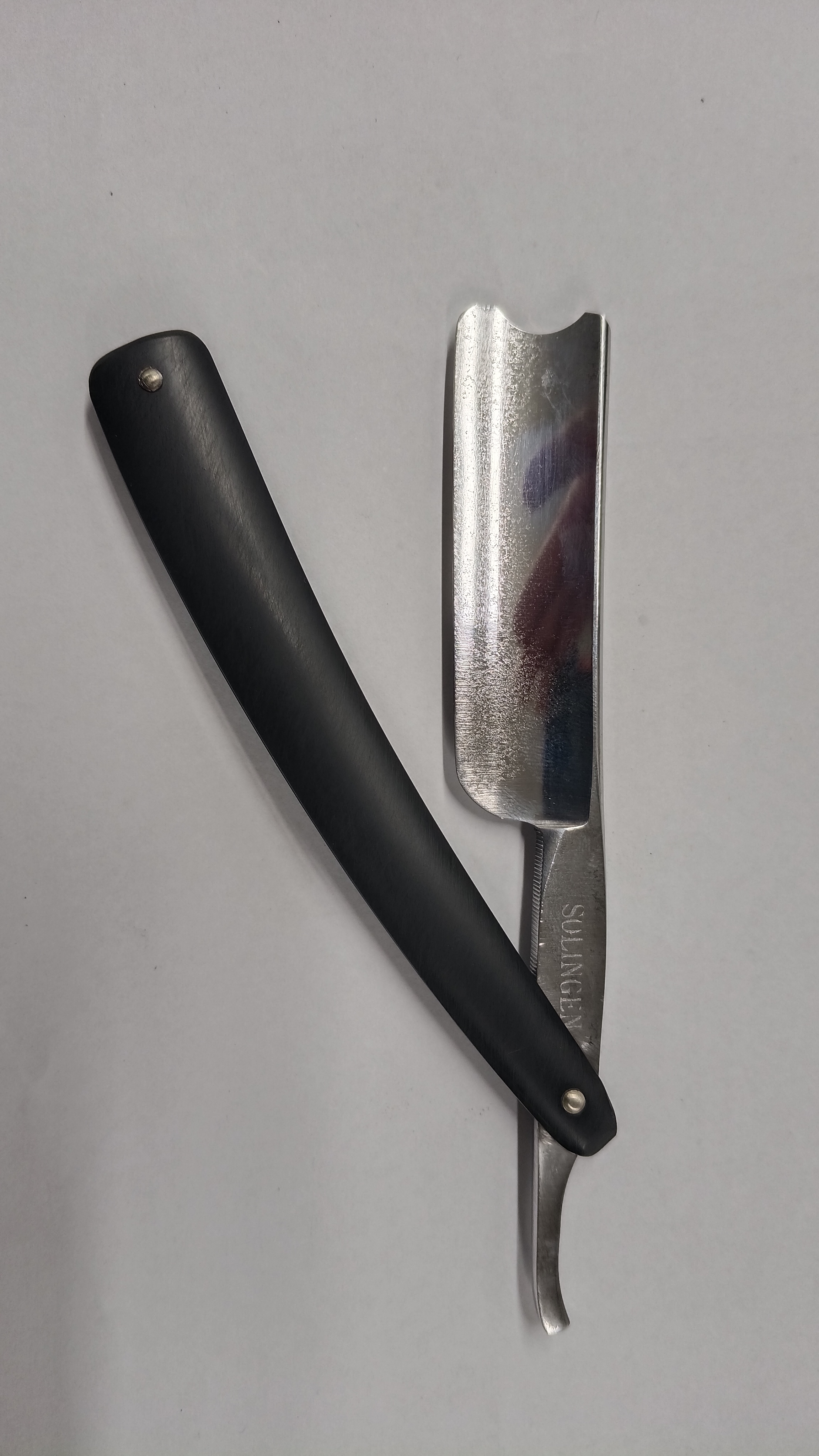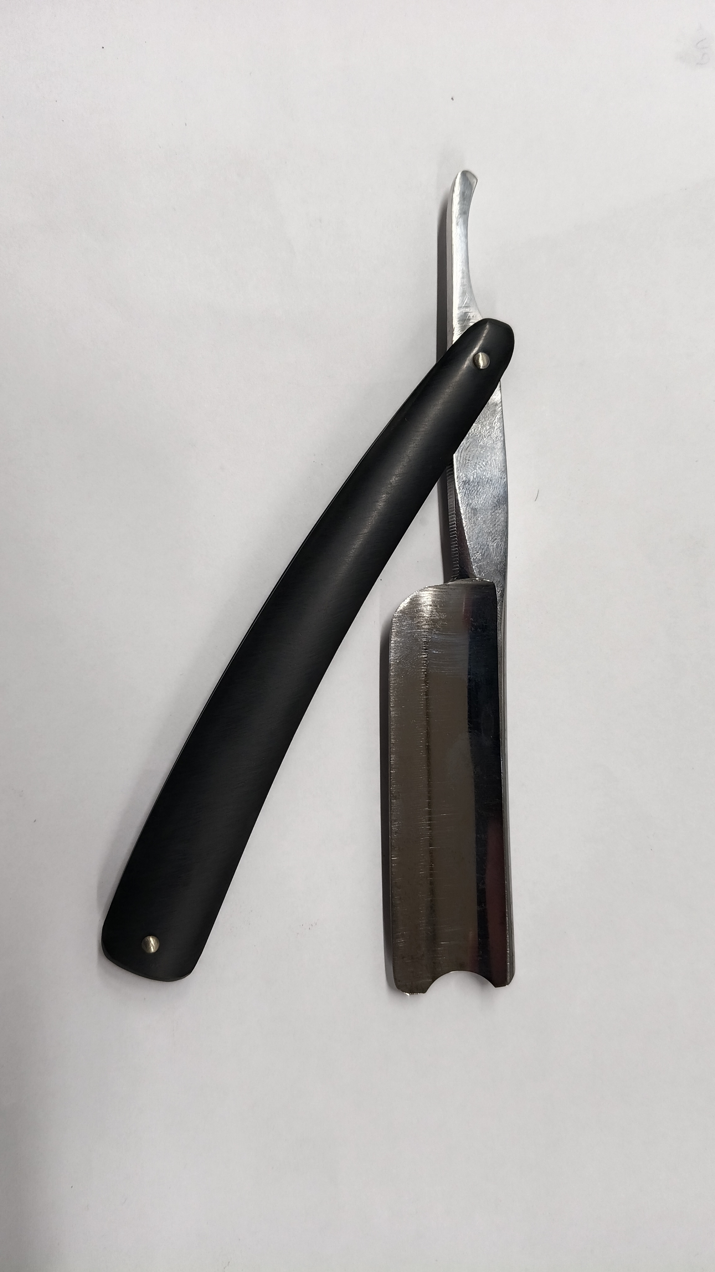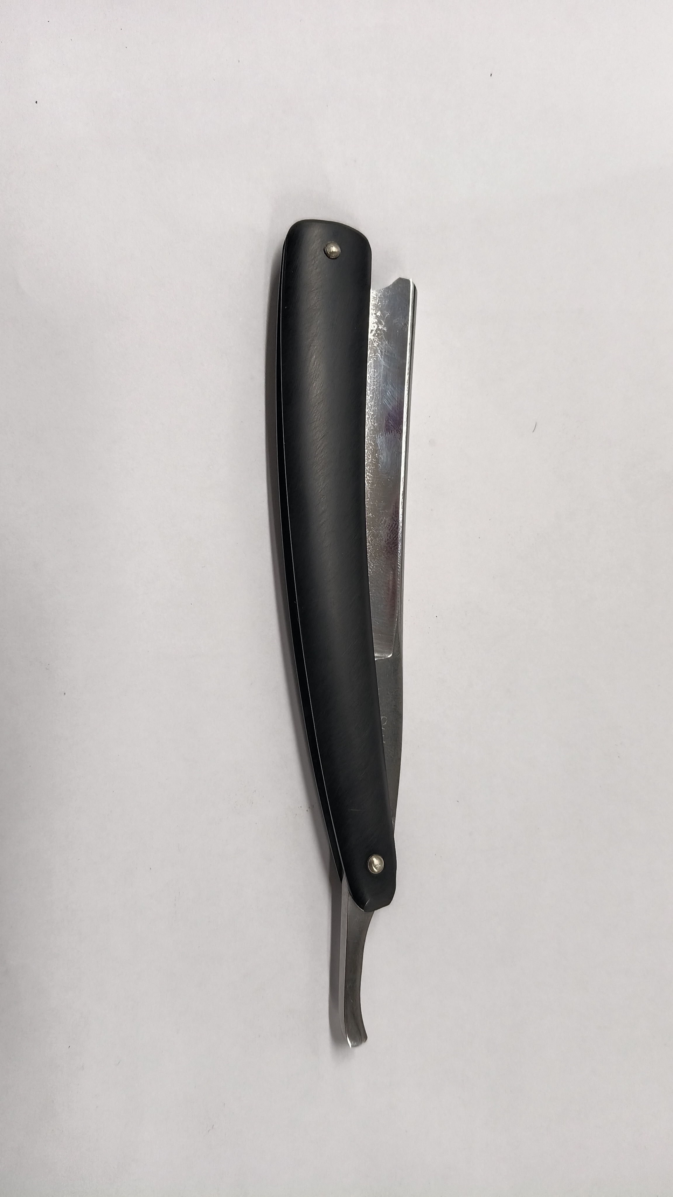 Le he realizado una punta barbera y un rebaje en la punta del lomo, he matizado las cachas de baquelita para simular tipo cuerno, y la he recortado, ya que sobraba mucho cerrada y no me gustaba nada, dejandola tipo Wade & Butcher, una buena pulida y limpieza y si puedo está noche la afilare con belgas azul, coticule y jnat Kiita y kiita Aka, a ver si puedo y me doy el afeitadon mañana. Un saludazo a todos y espero que os guste. Chaaaoo