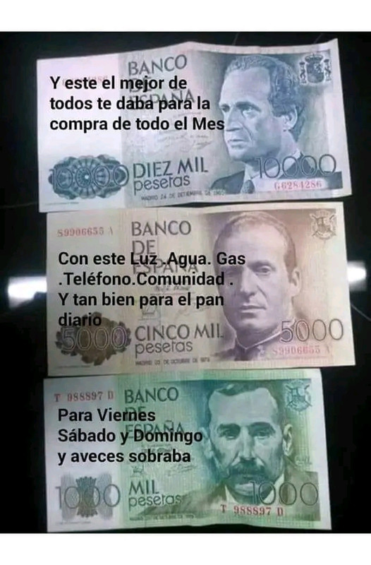 Menudo compendio de trolas, cómo les gusta a los de ahora pretender que la Peseta era maravillosa y estupenda.10.000pts daban para la compra del mes…¿en qué año? Porque igual 3 o 4 años después necesitabas 2 ó 3 de esos.
