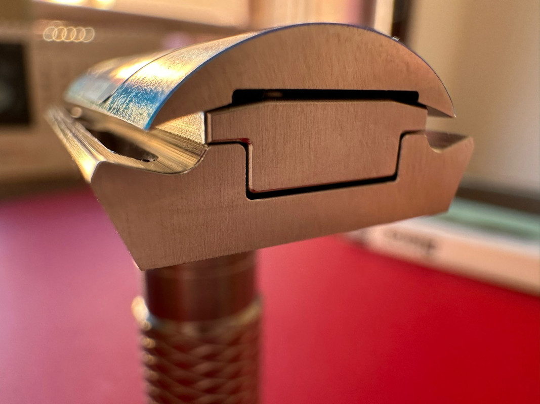 No puedo esperar a sacarla a la palestra. De momento puedo adelantar que, si bien es una aleación de Ti+Acero 316, se nota claramente que bascula hacia la cabeza (pero mucho). Me la he echado a la cara sin espuma y con una Polsilver: desde luego suave es de narices. Aunque es pronto para sacar conclusiones. Espero que me de muchos y muy buenos afeitados.