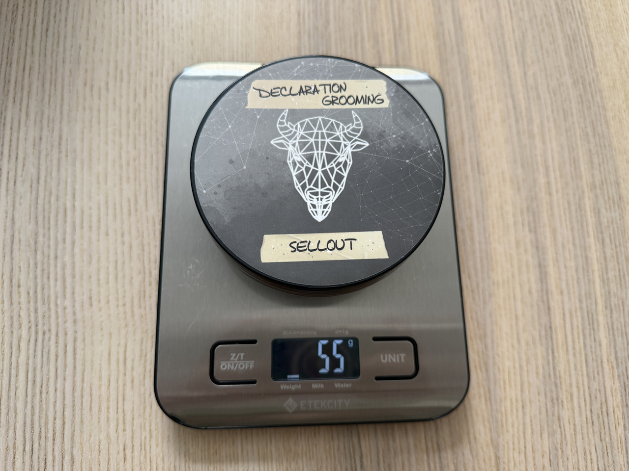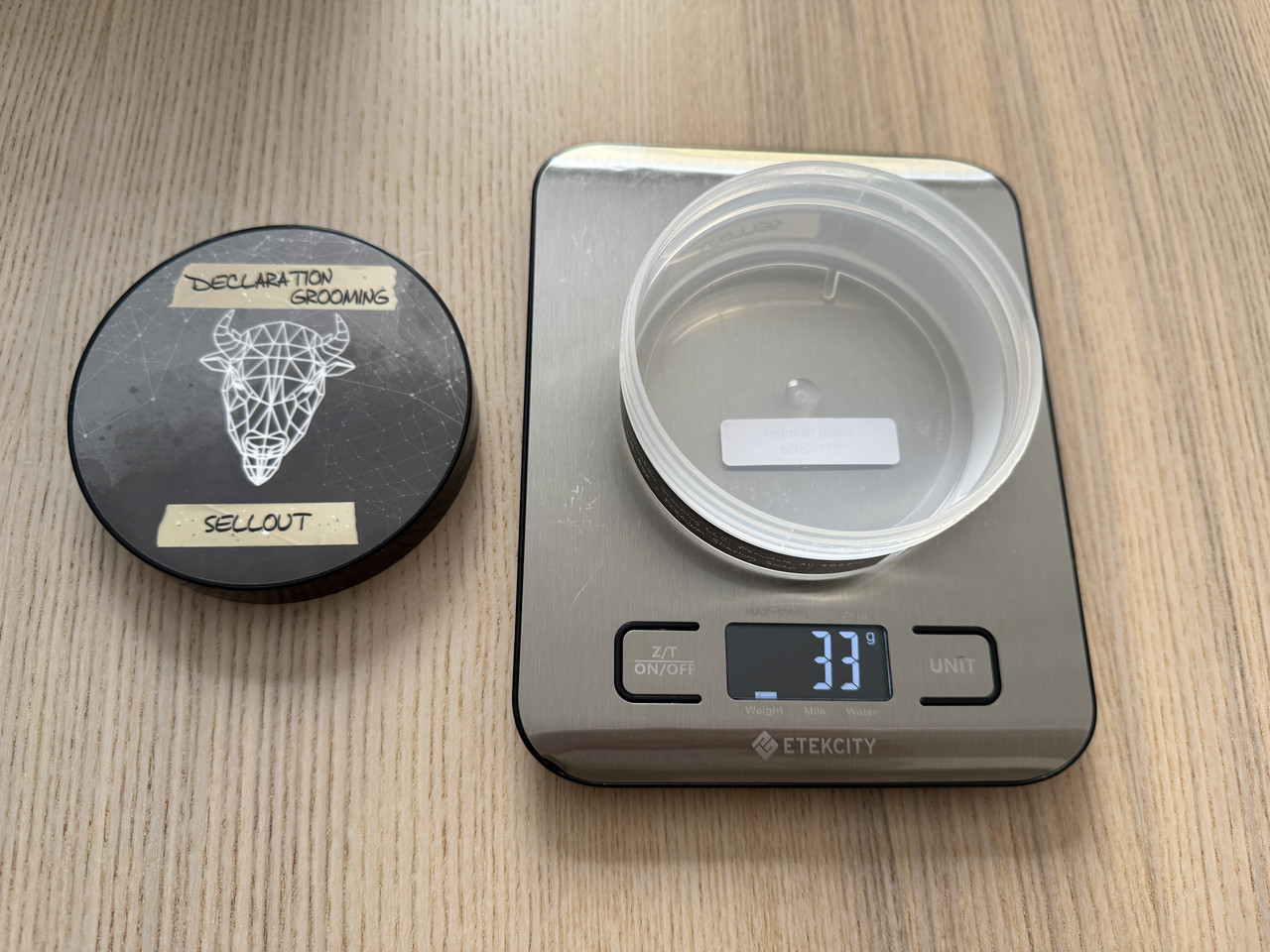Los envases de Declaration Grooming pesan 33 gramos sin tapa