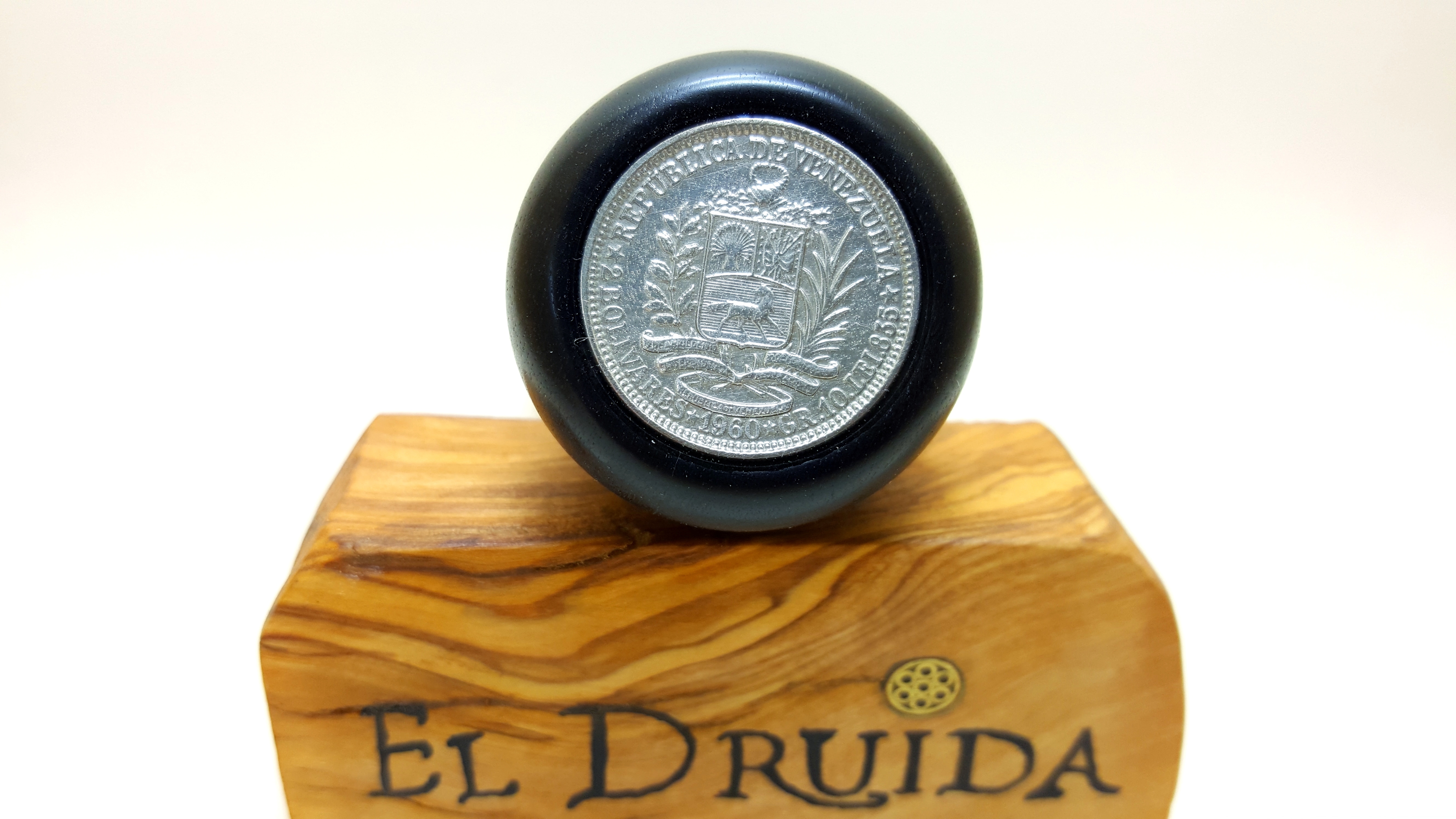 Moneda de plata de Venezuela en la base, protegida por una capa de resina Crystal pulida a espejo.