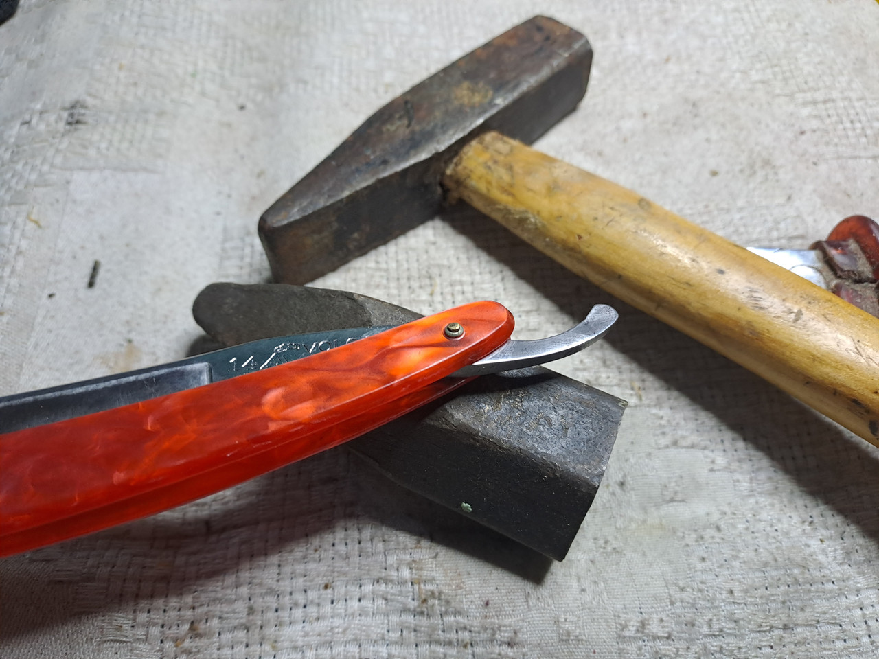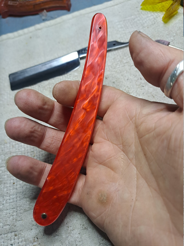 Creo que es el trabajo con el que más satisfecho estoy, me encanta como ha quedado, esas cachas rojas han sido un acierto, a la hoja se le han quitado casi todas las marcas.