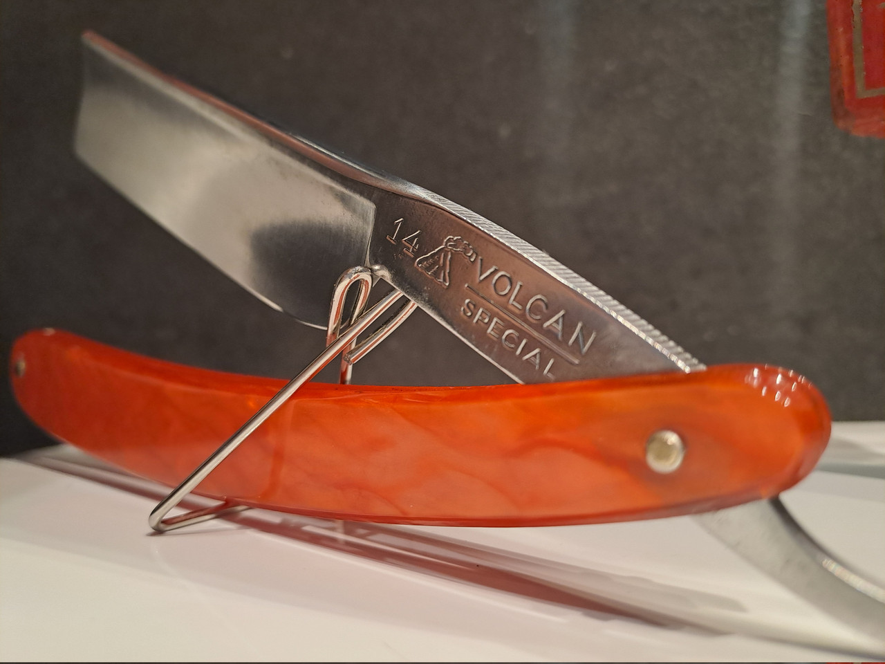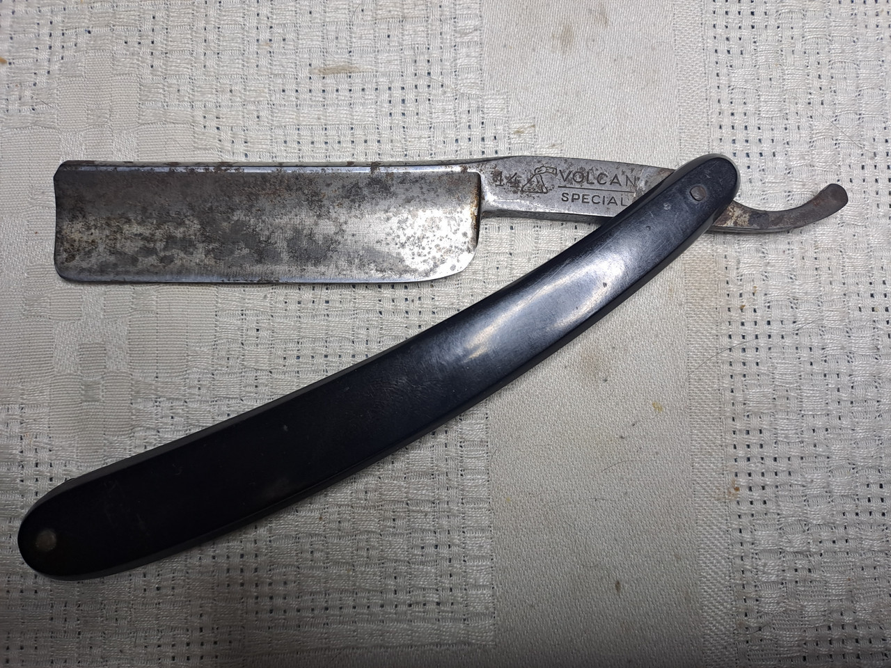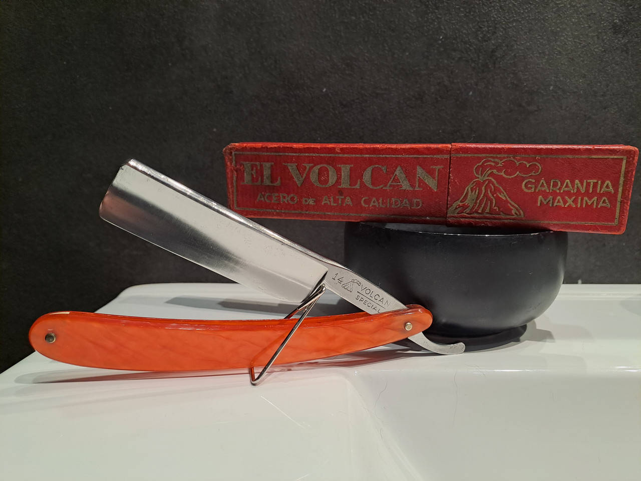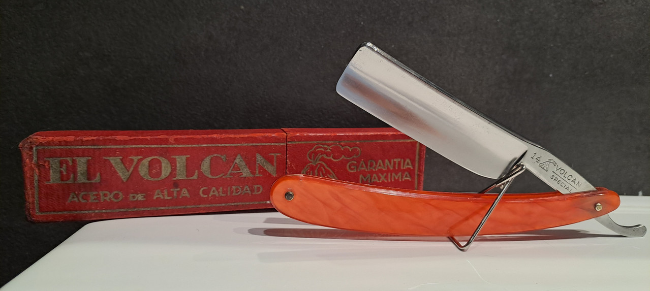 Hoy le toca dedicarle la mañana del Sábado a esta superviviente, EL VOLCAN 14, me llegó tal cual está, sin caja, por suerte tengo una caja vieja “El Volcan” de otra navaja que vino destrozada, la aprovecharé.