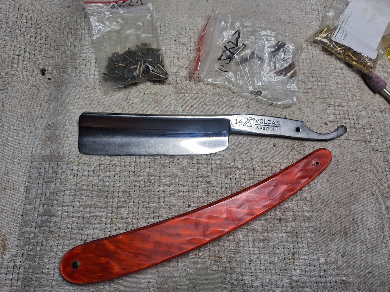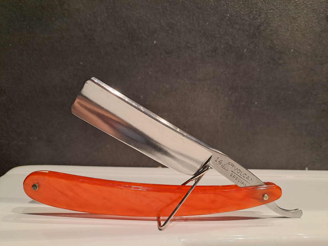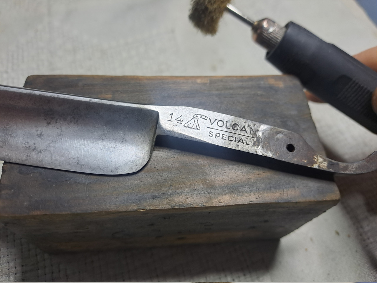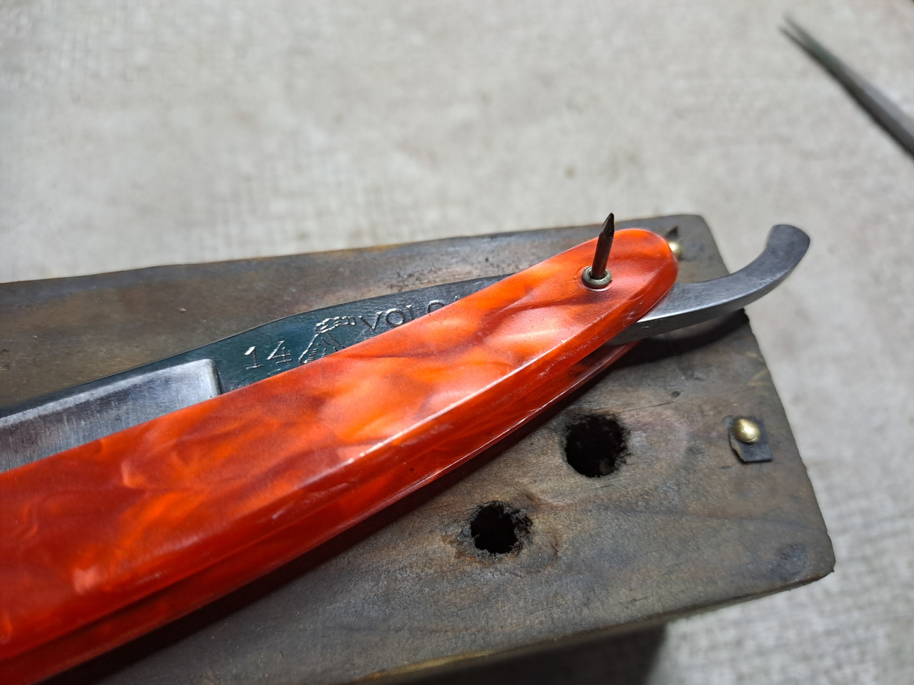 Hoy le toca dedicarle la mañana del Sábado a esta superviviente, EL VOLCAN 14, me llegó tal cual está, sin caja, por suerte tengo una caja vieja “El Volcan” de otra navaja que vino destrozada, la aprovecharé.