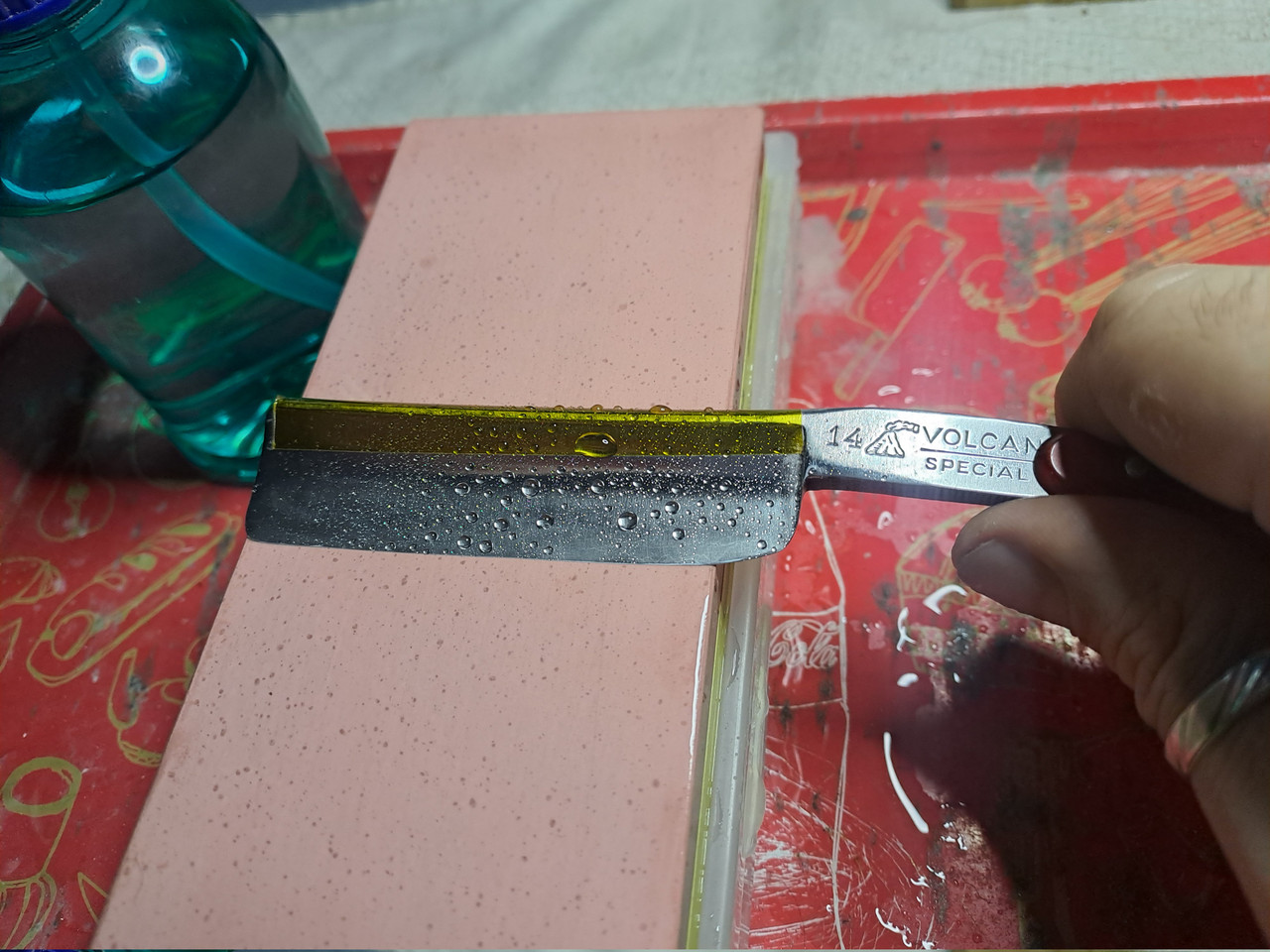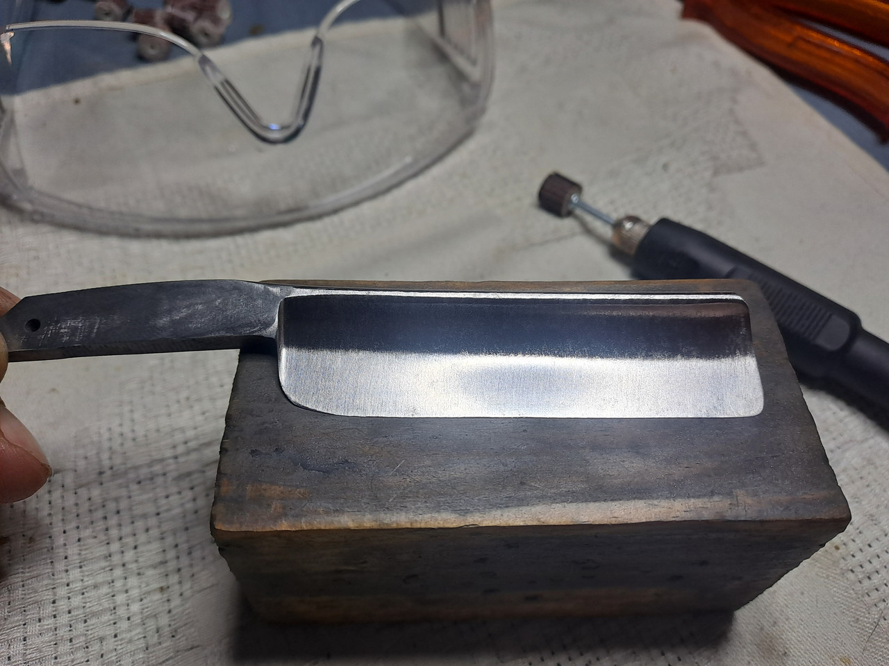 Una vez lijada la hoja, empiezo a pasarle las abrasivas en progresión hasta acabar con el pulido.
