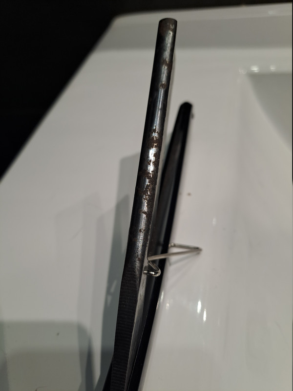 Empiezo a retirar el óxido poco a poco a ver que tal está la hoja debajo…