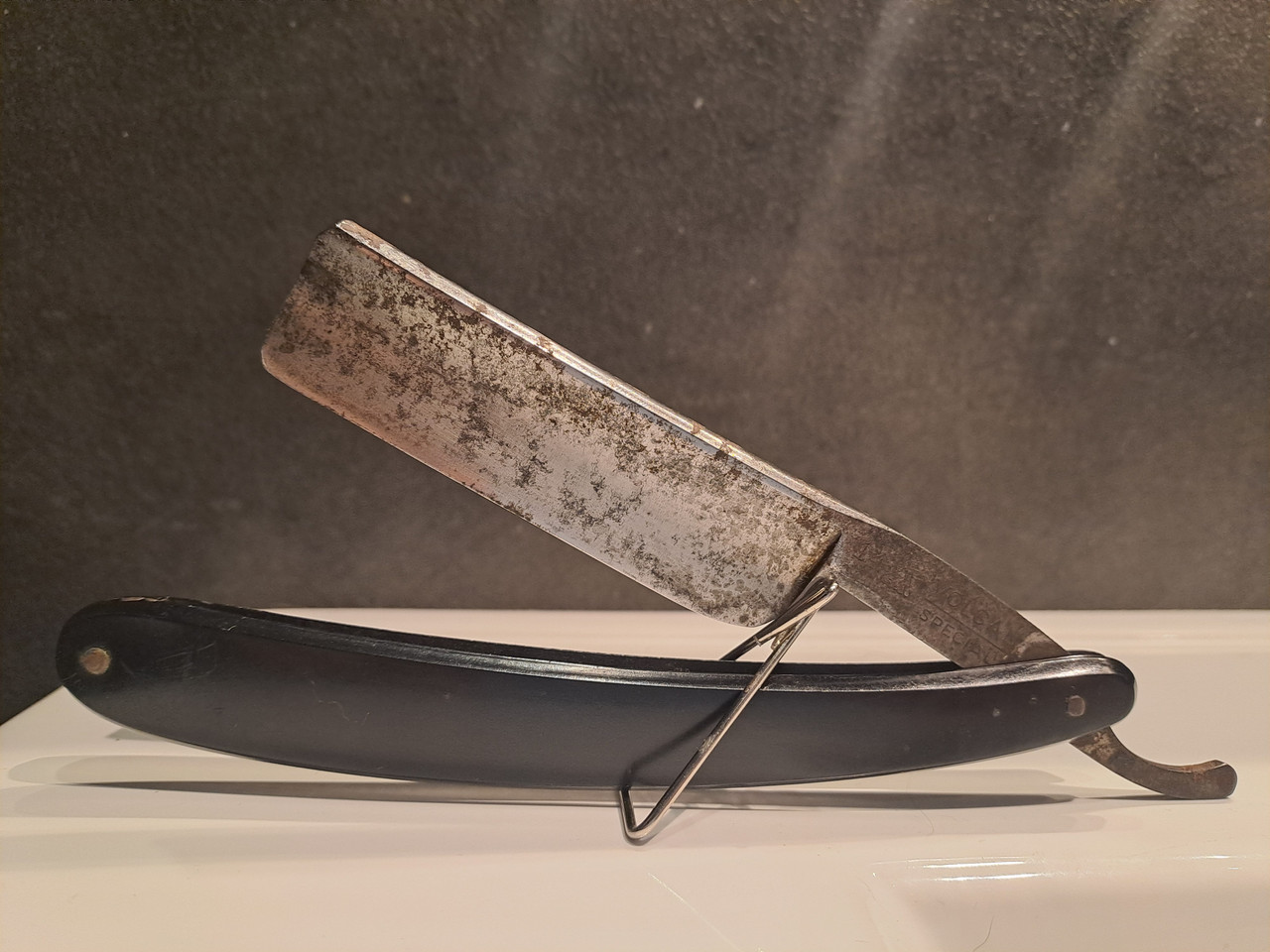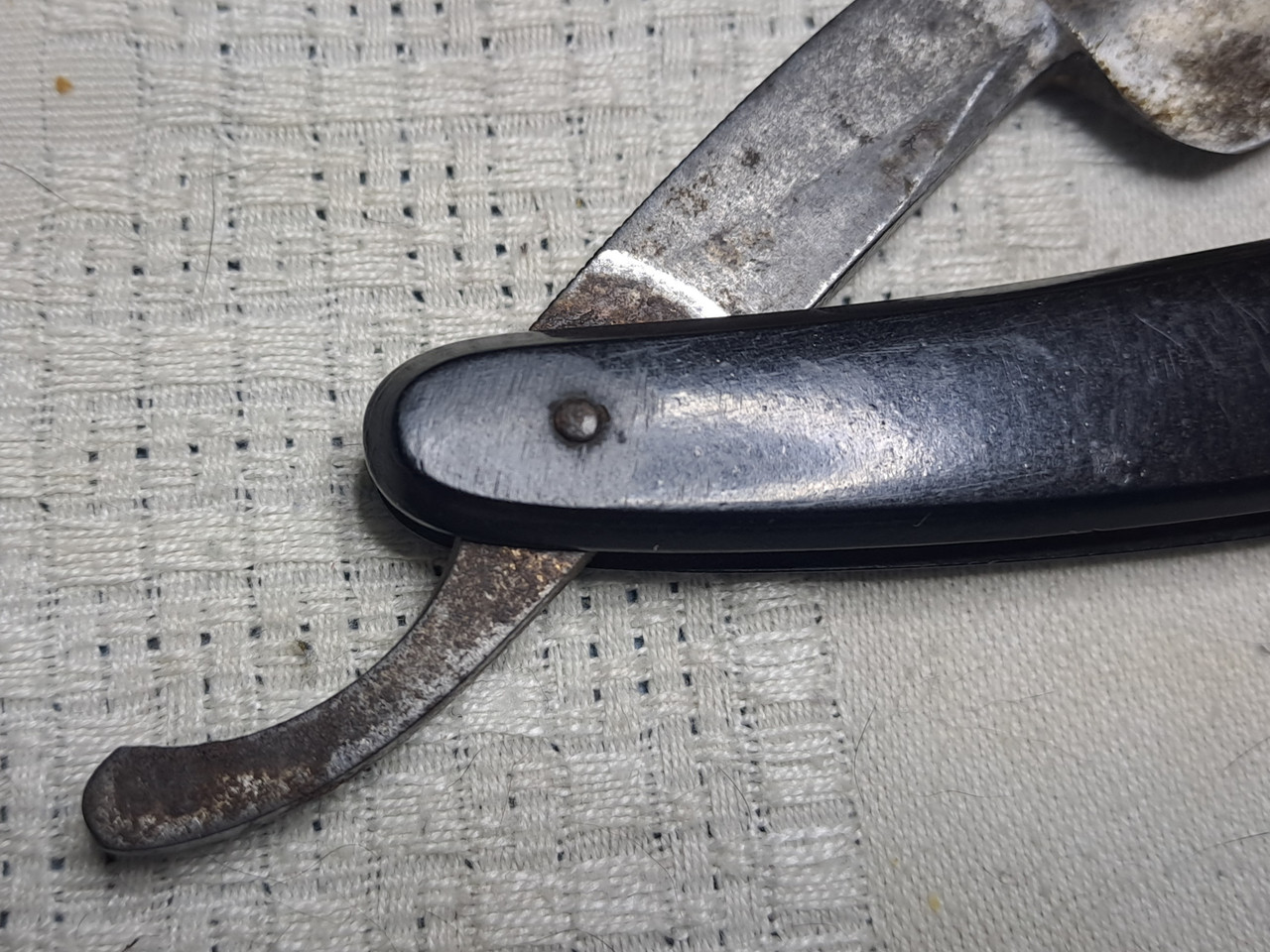 Por último le voy a dar un pequeño repaso a la caja, la tenía guardada por un cajón, su navaja original no superó el paso del tiempo, pero la caja se conserva relativamente bien.