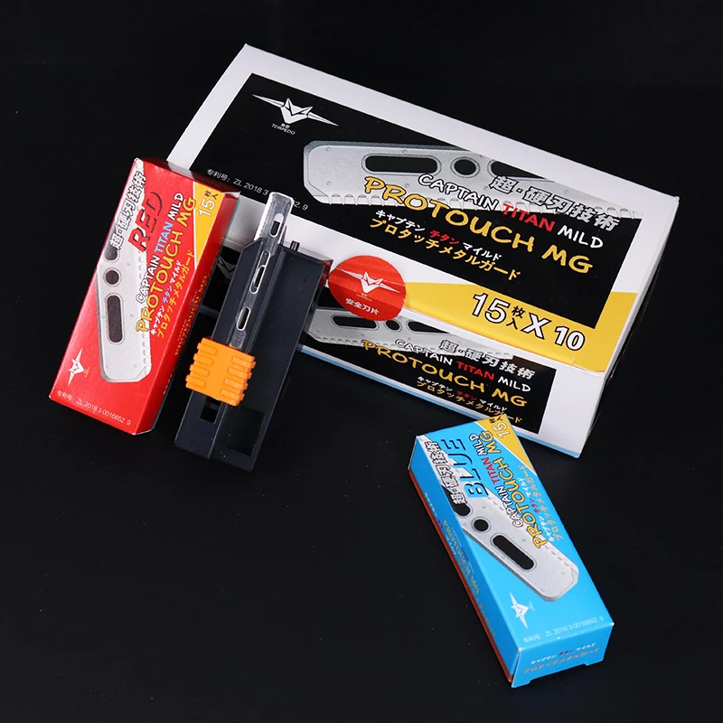 Respecto a las cuchillas…tienes con protección y sin ella. La Feather Profesional es la más usada sin protección, luego la Super Profesional tiene algo más de exposición y la Pro-Guard es la que lleva protección por si se te va lateralmente que no te produzca corte.