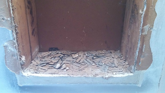 Lo de las cuchillas no deja de ser acero oxidado detrás del tabique, dicho sea de paso en las obras los gremios muchas veces tiran en esos huecos lo inimaginable, hasta el punto que a veces algún iluminado se carga el puente térmico de las ventanas por meter en exceso desecho.